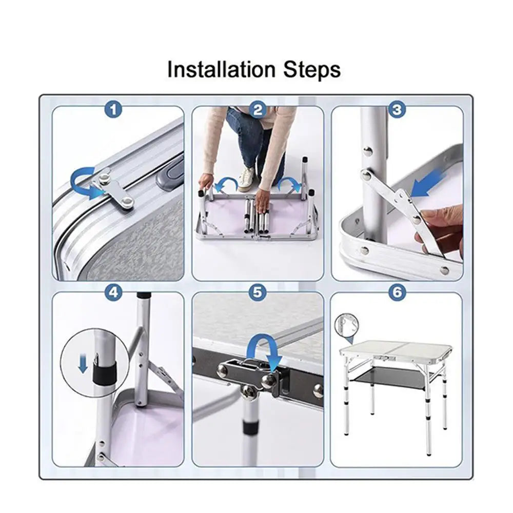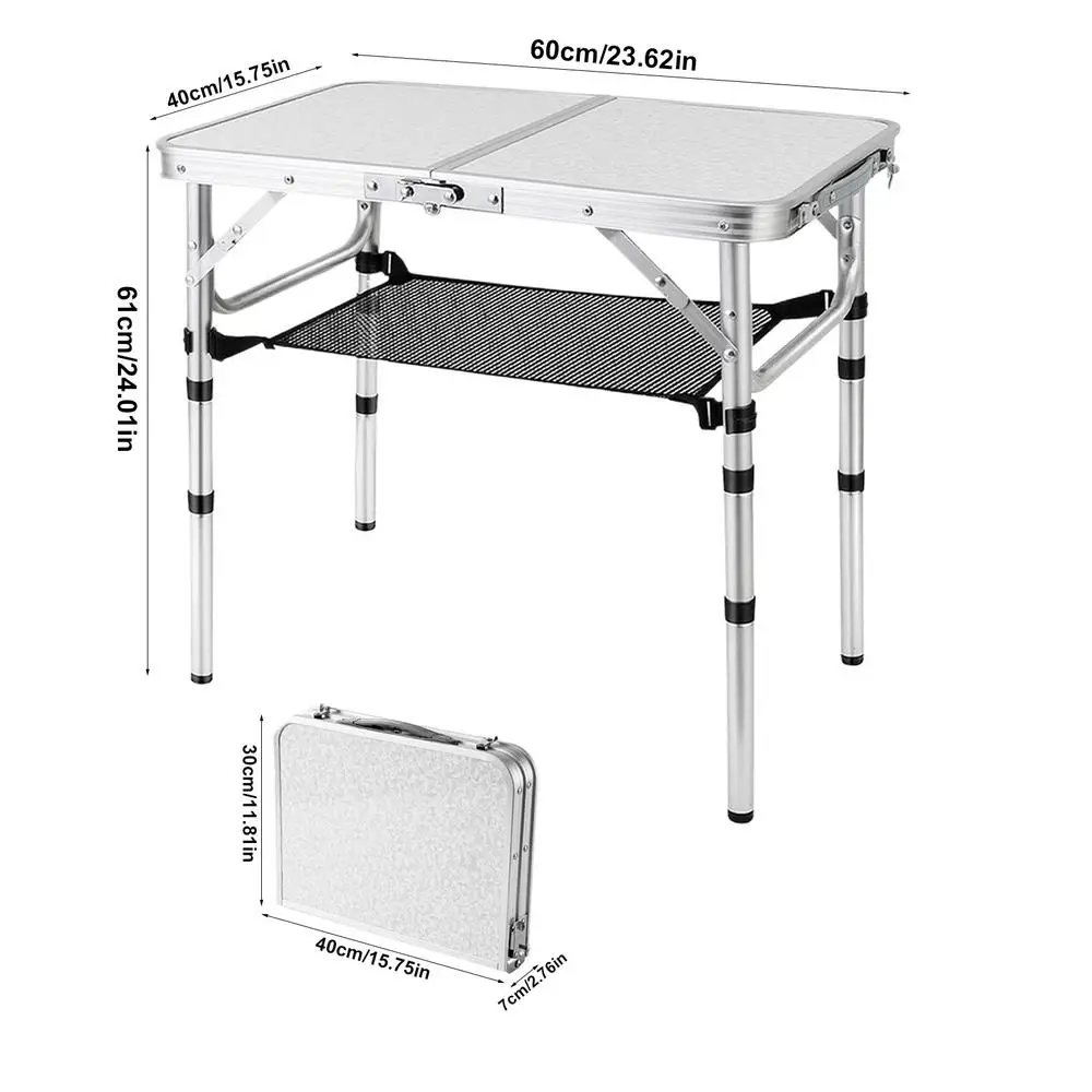 Camping Table Aluminum Camping Table With 3 Adjustable Height Lightweight Camp Accessories With Handle Storage Net Outdoor
