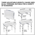 Enhanced your outdoor adventures with this foldable camping table, crafted for convenience. Offering 3 height adjustable modes, it accommodates a variety of uses, including BBQs, picnics, and backyard gatherings. Lightweight and portable, it's easy to carry with its integrated handle, whether you're hiking, at the beach, or exploring patios and gardens.