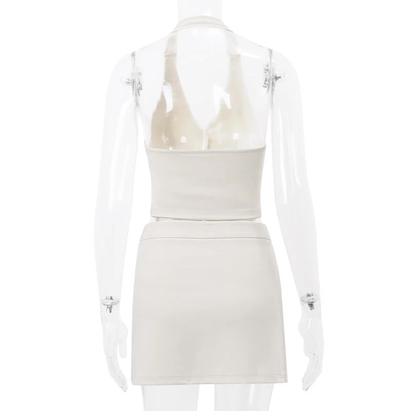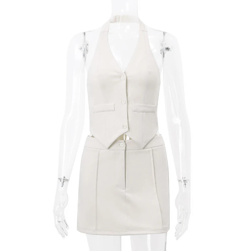 Candyhot Fashion Casual V-neck Sleeveless Suit Tank Top With High-waist Bodycon Hip Skirt Streetwear Retro Women 2 Piece Sets