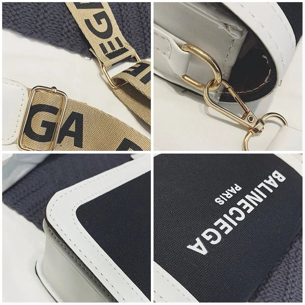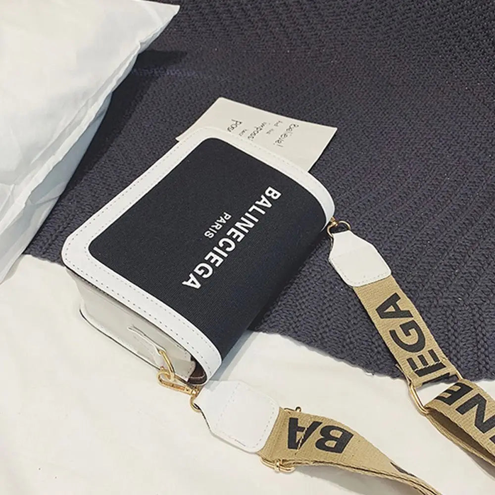 Canvas Shoulder Bag Versatile Wide Shoulder Strap Crossbody Bag Small Square Bag Women