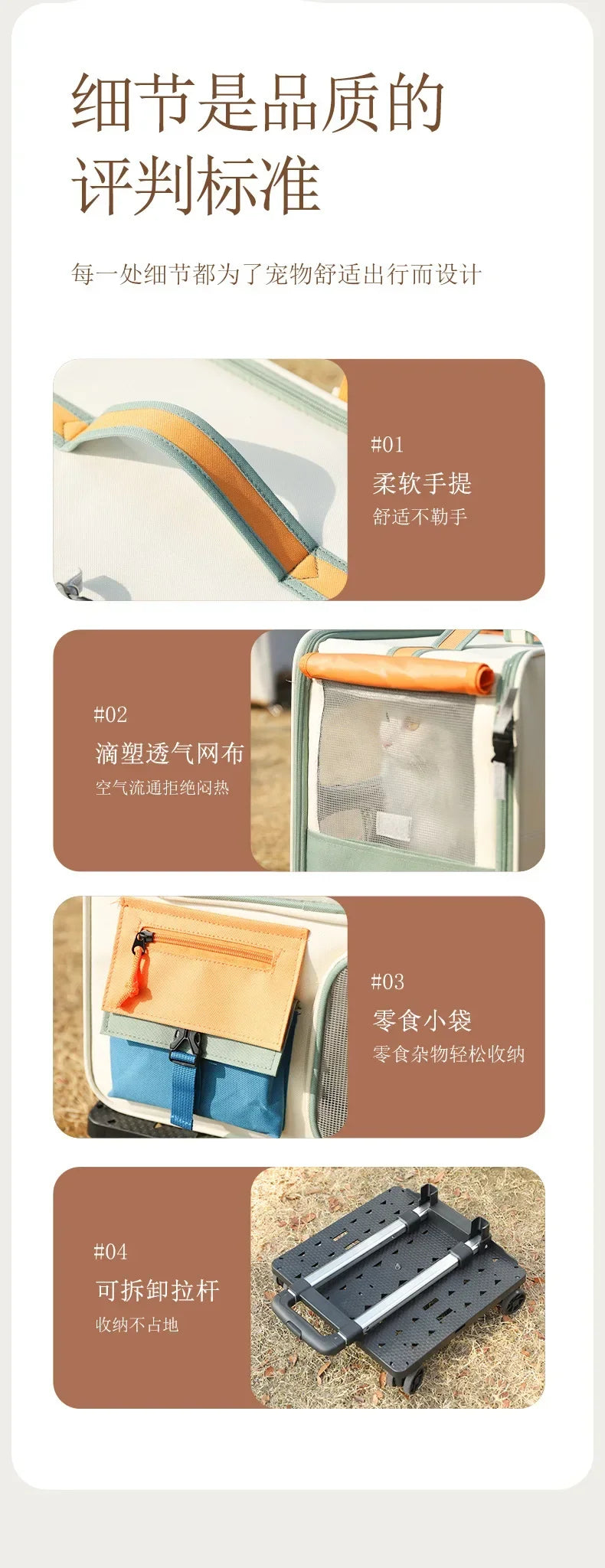 ✅【Multiple Ways of Carrying】This trolley for small pets is detachable (wheels not included ), so you can use it as a trolley, a shoulder bag or a handbag to carry your pets.