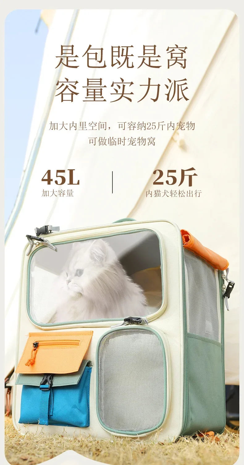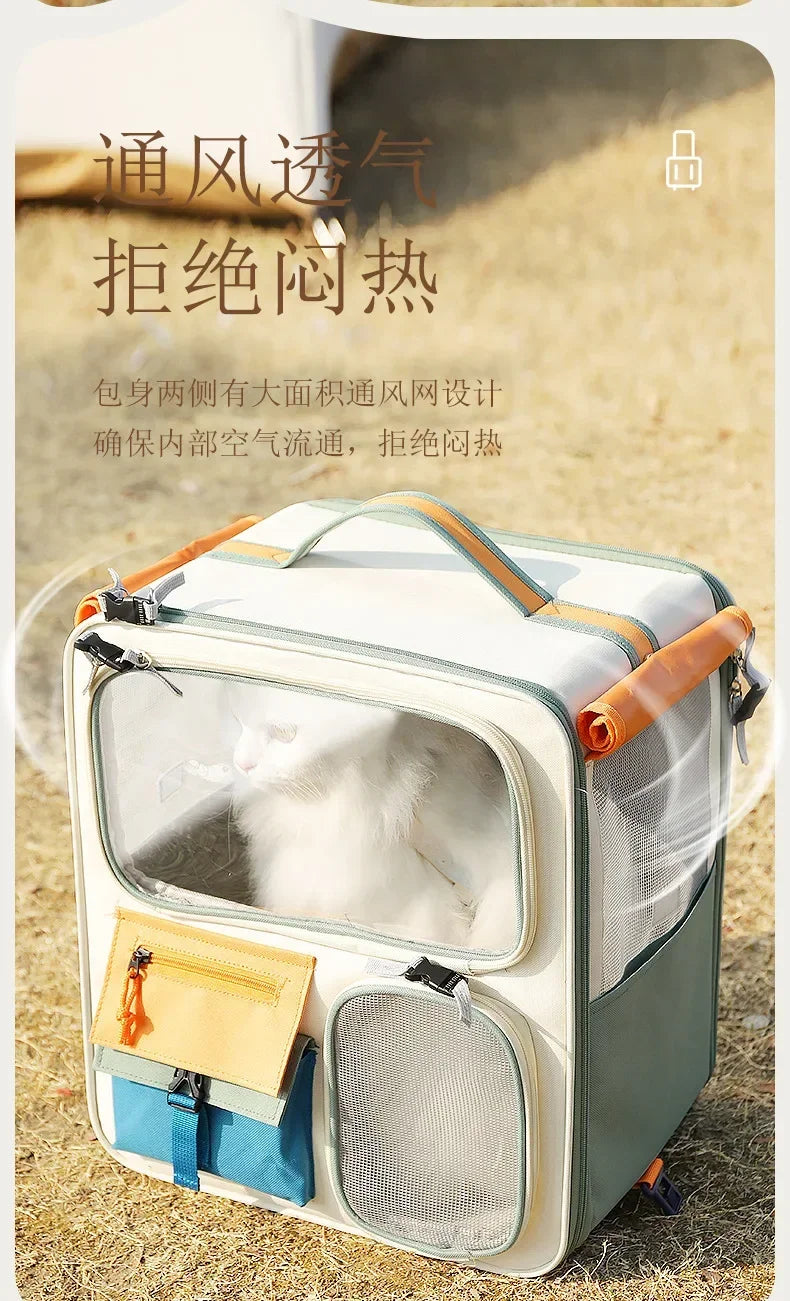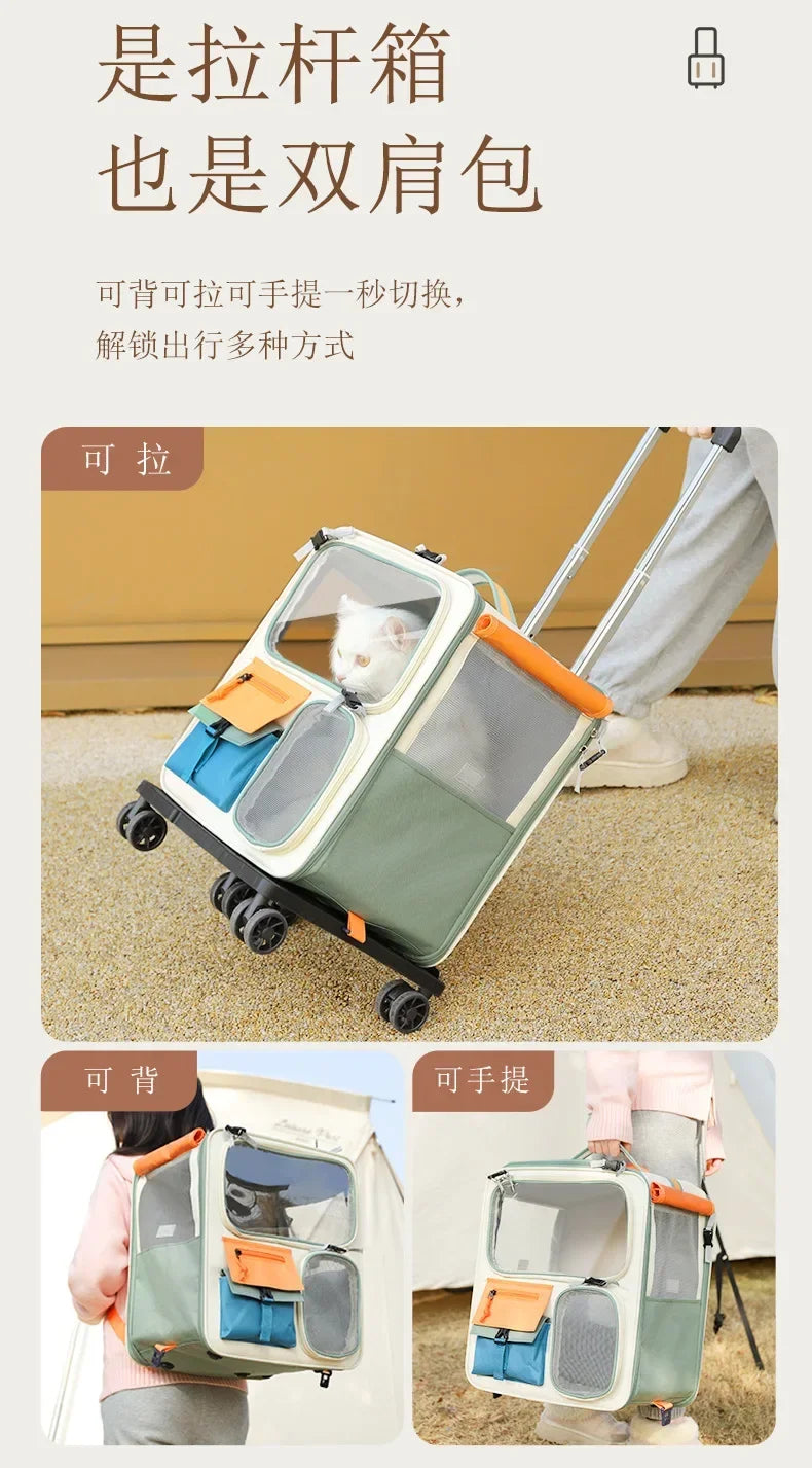 Cat Carrier Cat Backpack with Universal Wheels Soft-Sided Pet Travel Carrier Detachable for Car Camping Outdoor Pet Stroller