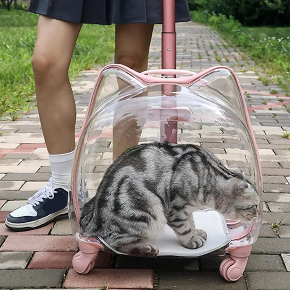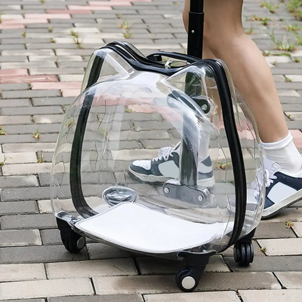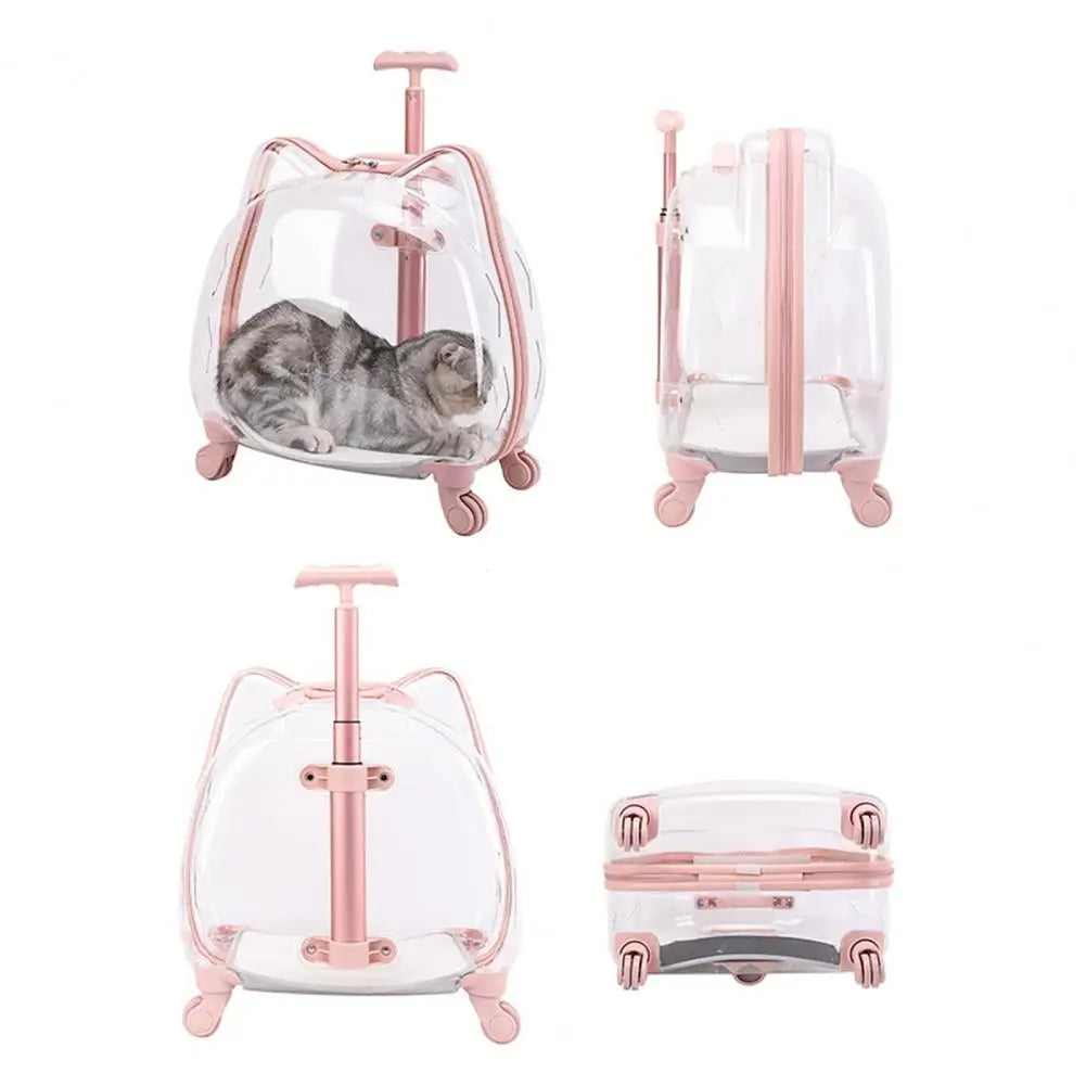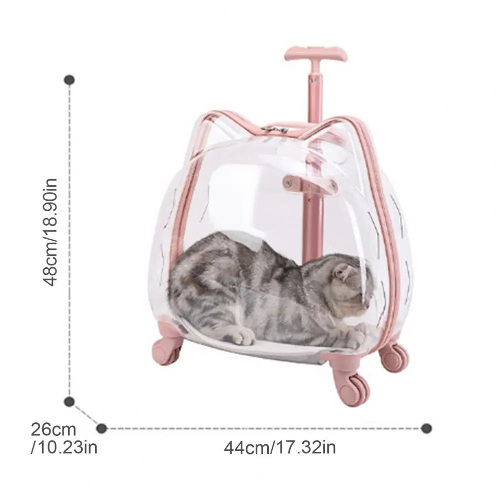 Cat Carrier with Wheels Transparent Pet Trolley Case Telescopic Rod Spacious Breathable Pet Trolley for Hiking Travel