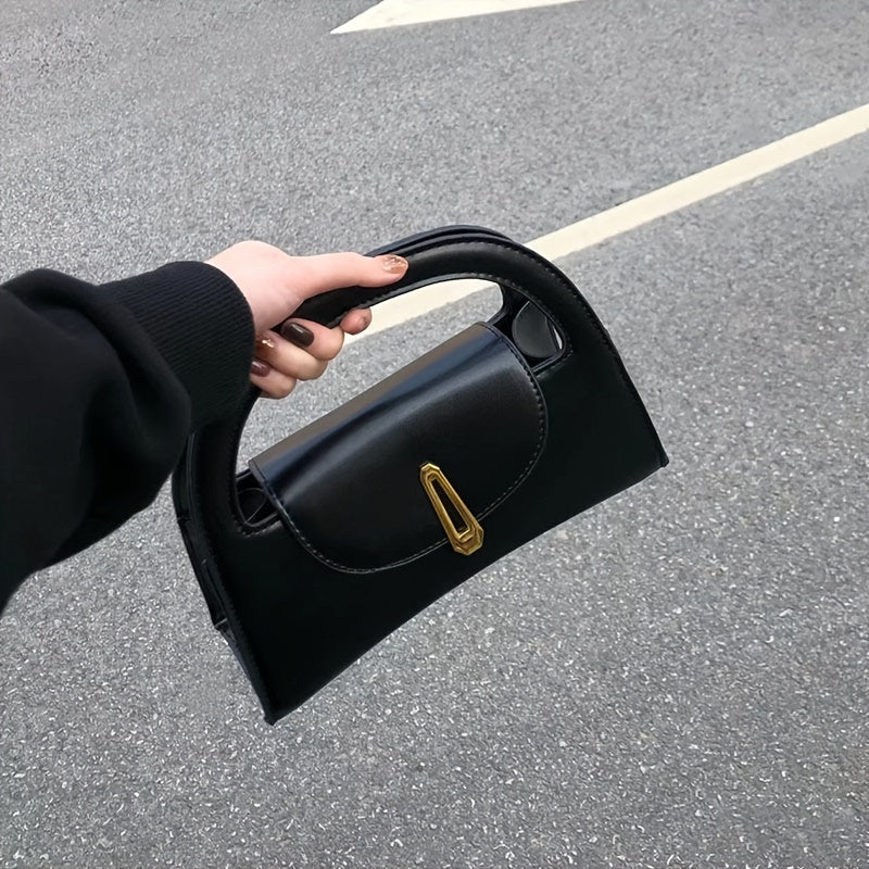 Chic Black Handbag with Golden-Tone Clasp & Chain Strap - Vintage French Design Crossbody Bag for Women, Compact and Stylish for Everyday Use, Crossbody Purse