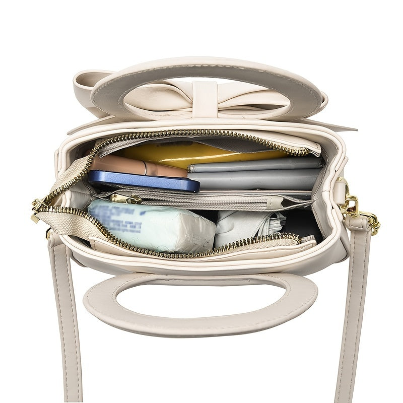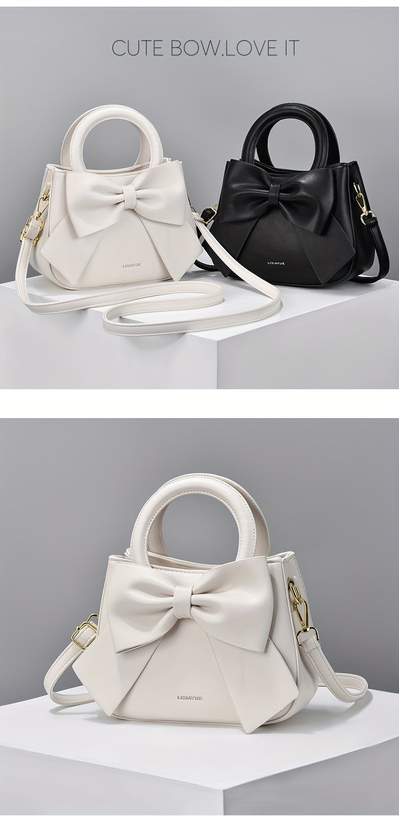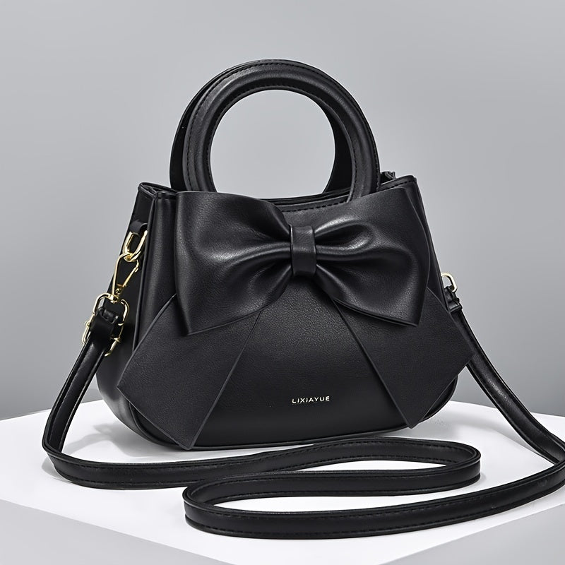 Chic Bow Accent Handbag - Durable Faux Leather, Dual Handle & Crossbody - Stylish Womens Purse for Everyday Fashion
