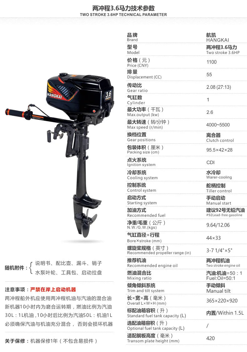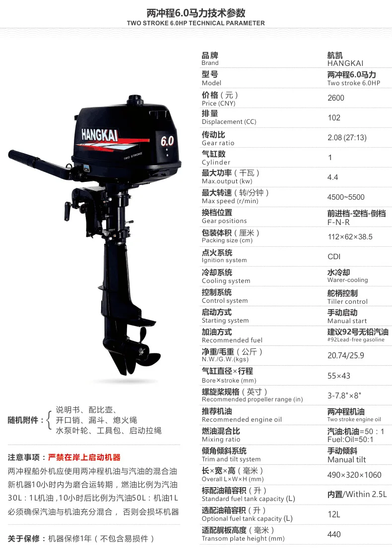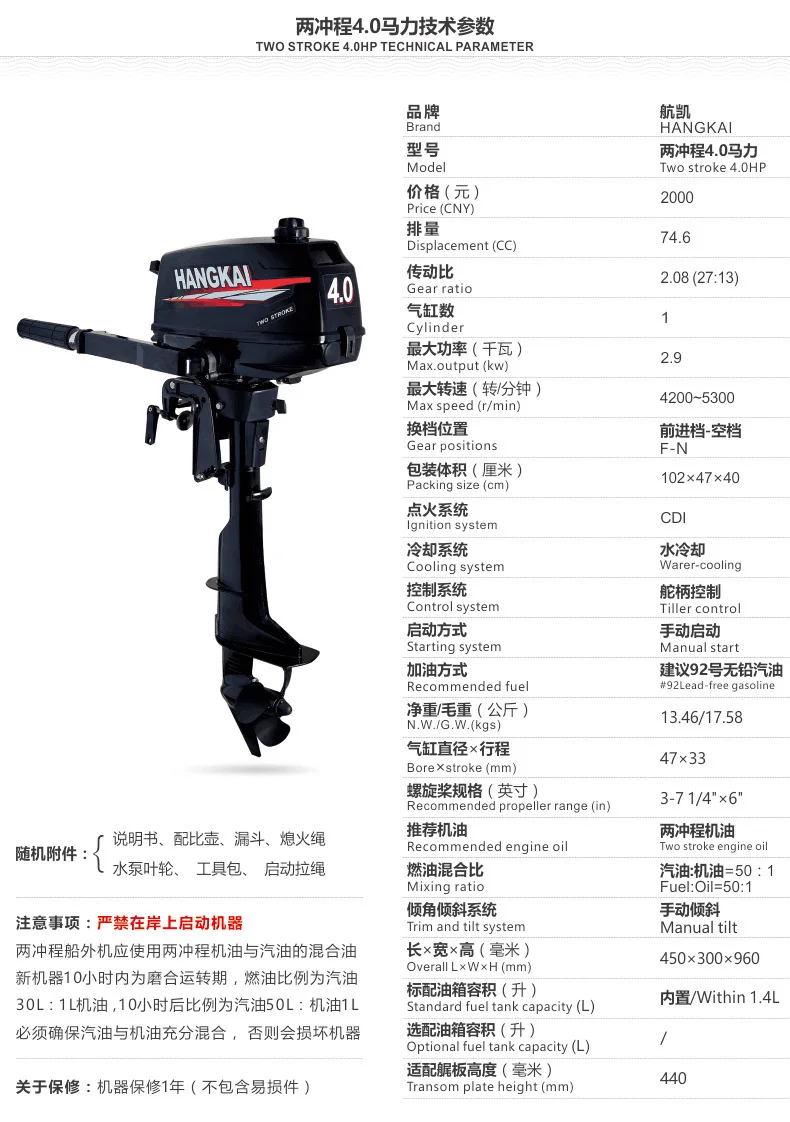 Hangkai outboard motor model parameters 2-stroke Water Cooling |
