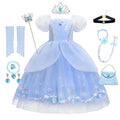 Cinderella Princess Cosplay Dress for Girl Kids Ball Gown Sequin Carnival TUTU Puff Mesh Clothing for Birthday Gift Summer Dress