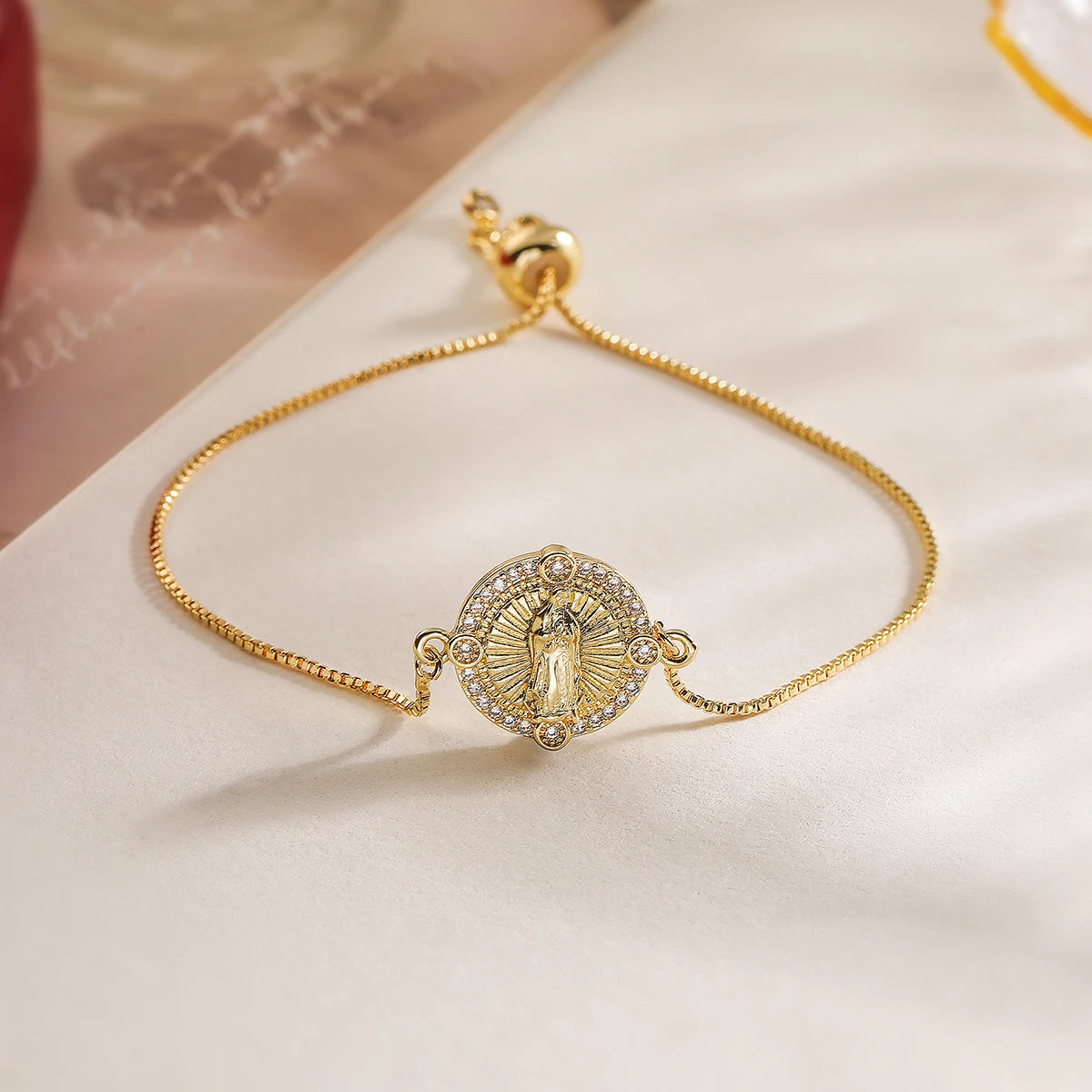 Classic Design Bling Bling CZ Zircon Inlay Virgin Mary Charm Bracelets For Women