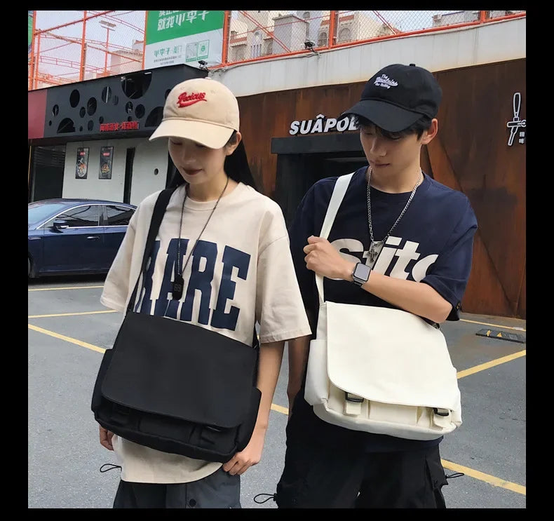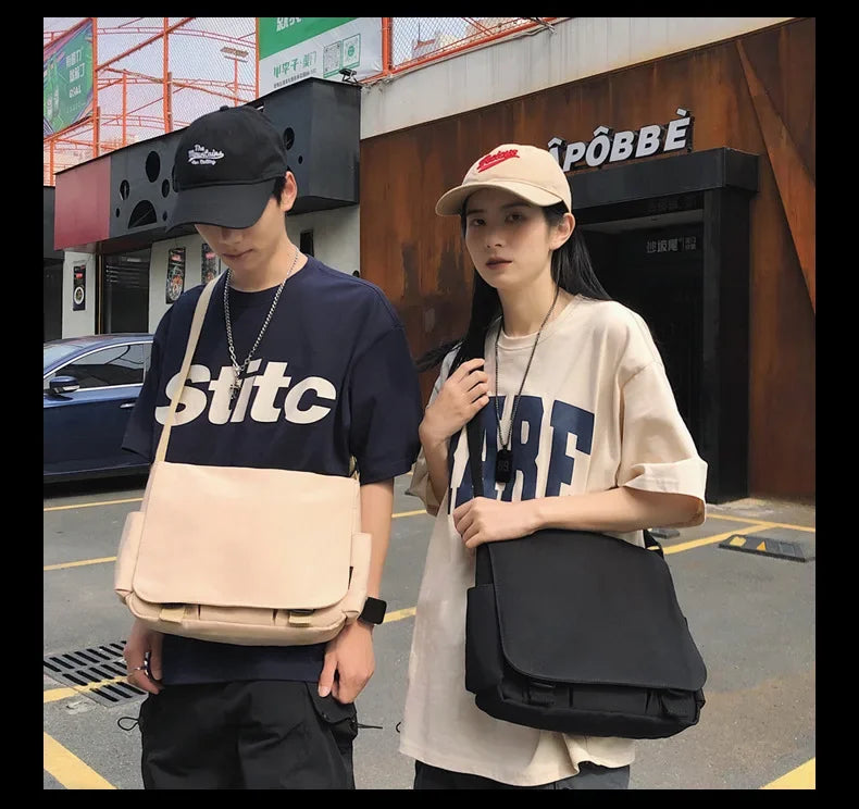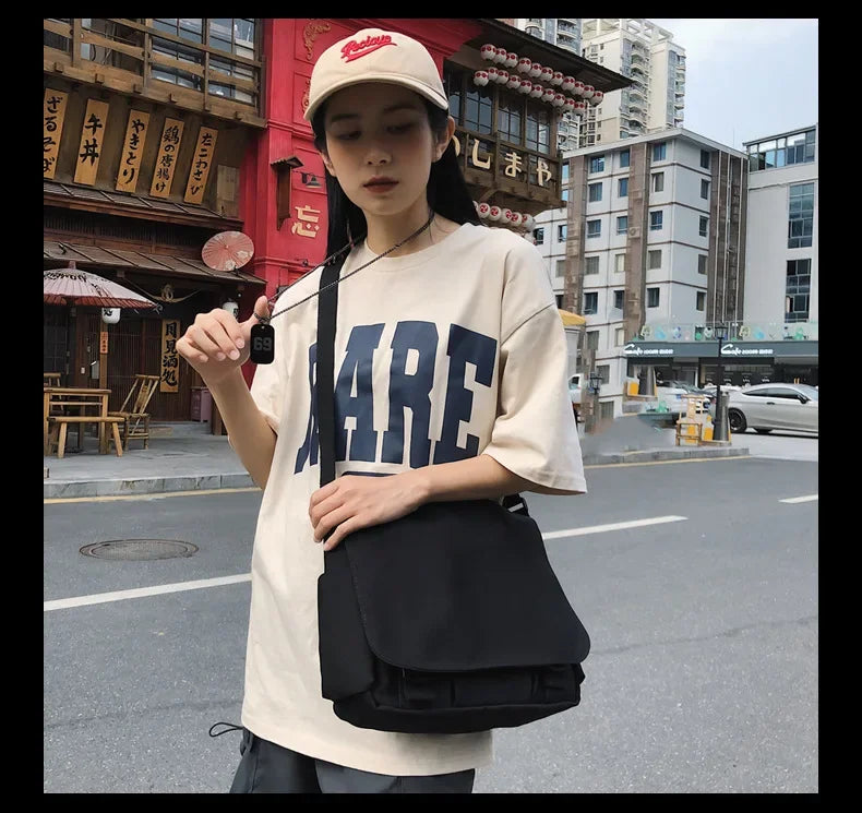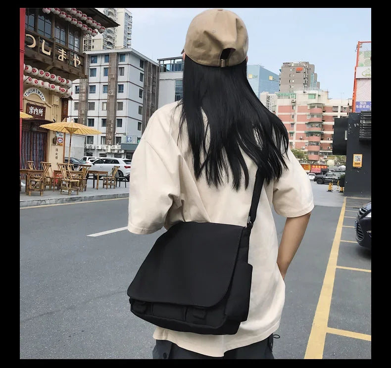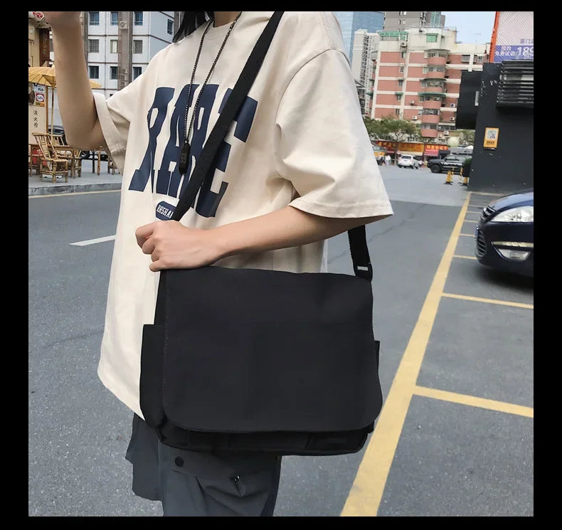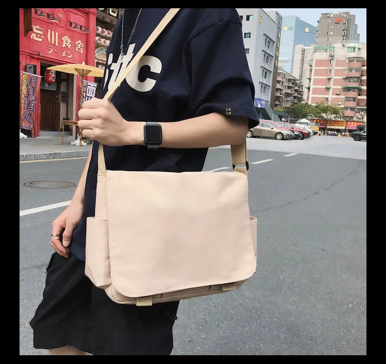 Collage Student School Bags Women&Men Unisex Crossbody Bags Multipockets Messenger Bag Simple Nylon Shoulder Bolso De Mujer