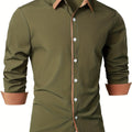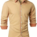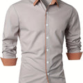 Contrast Color Long Sleeve Statement Trim Shirt - Men's Casual Trim