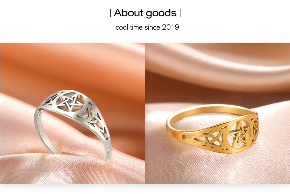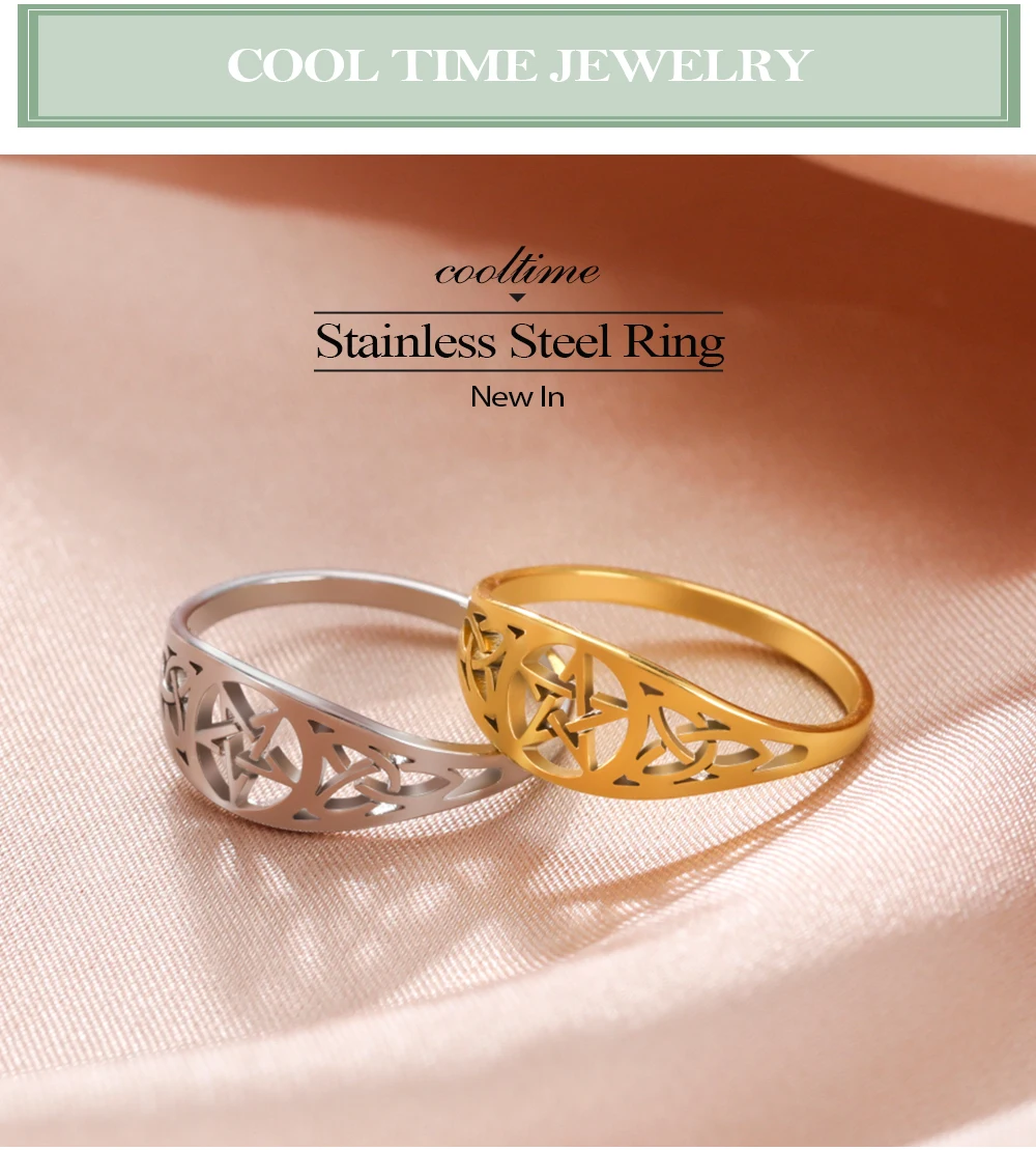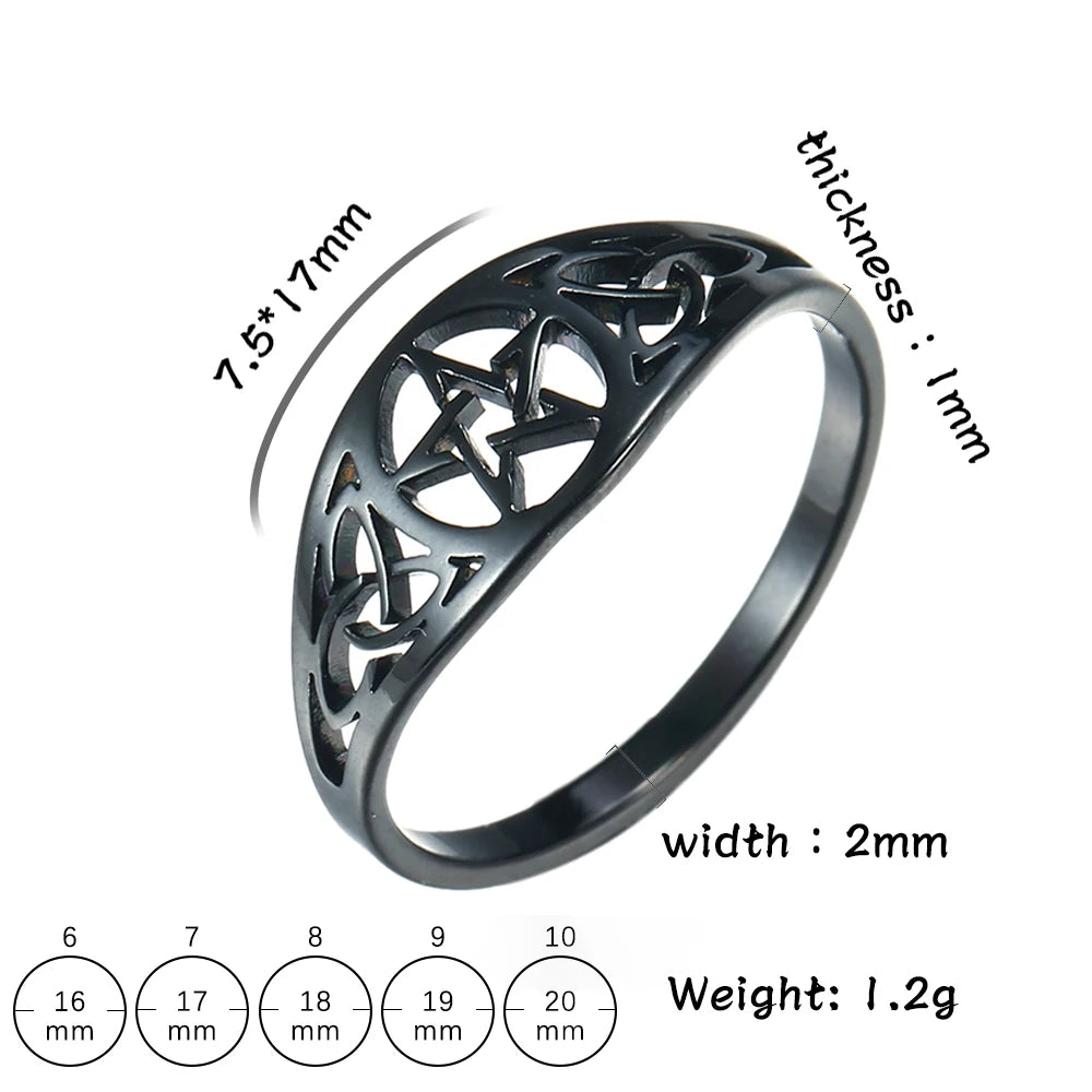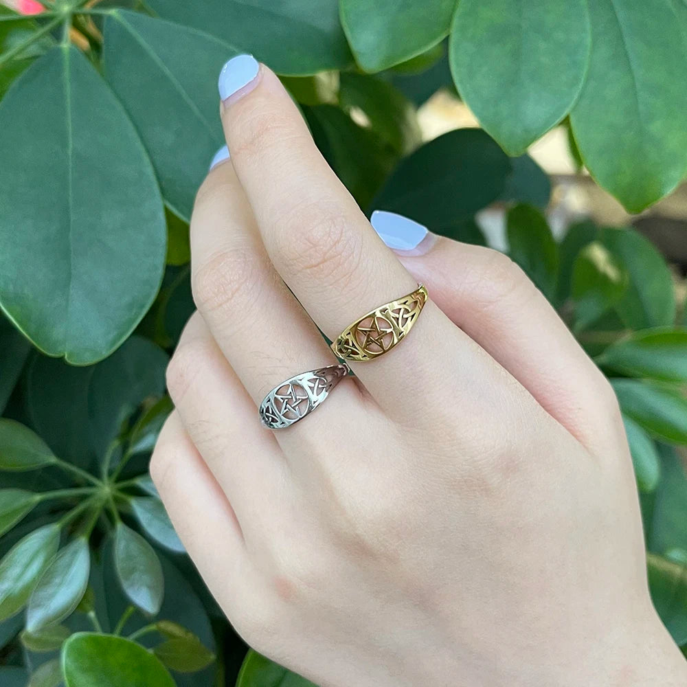 18k Gold Plated Witch Knot Supernatural Pentagram Ring for Women Stainless Steel Celtics Knot Star Amulet Ring
