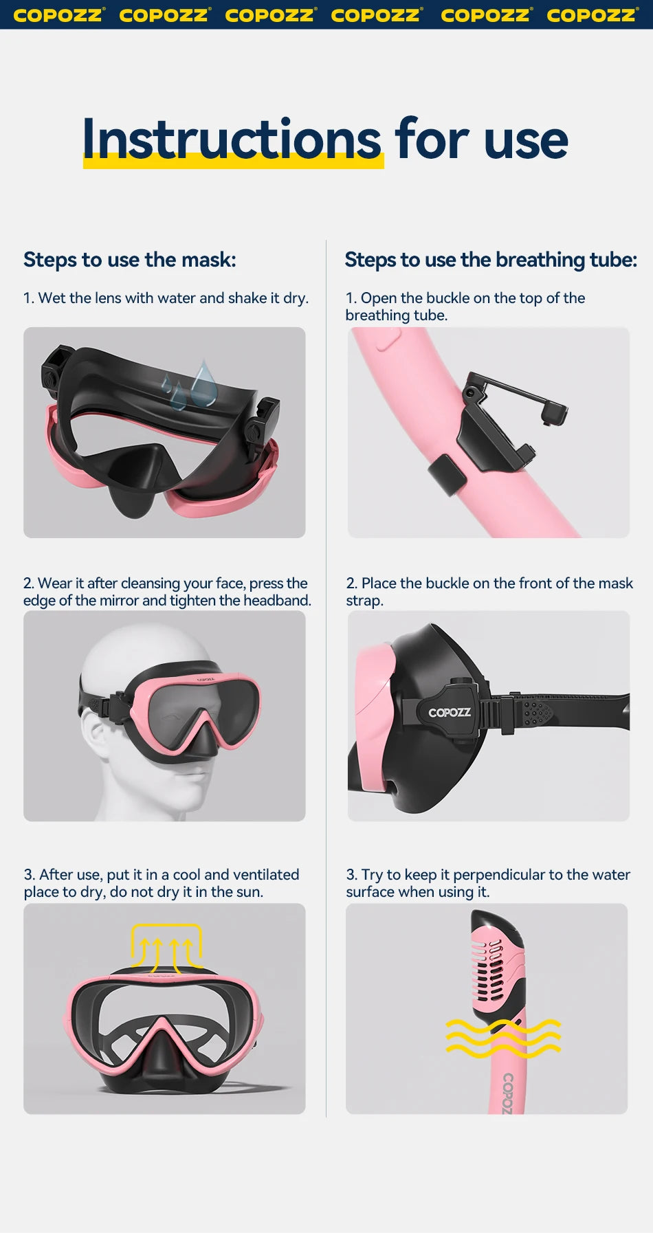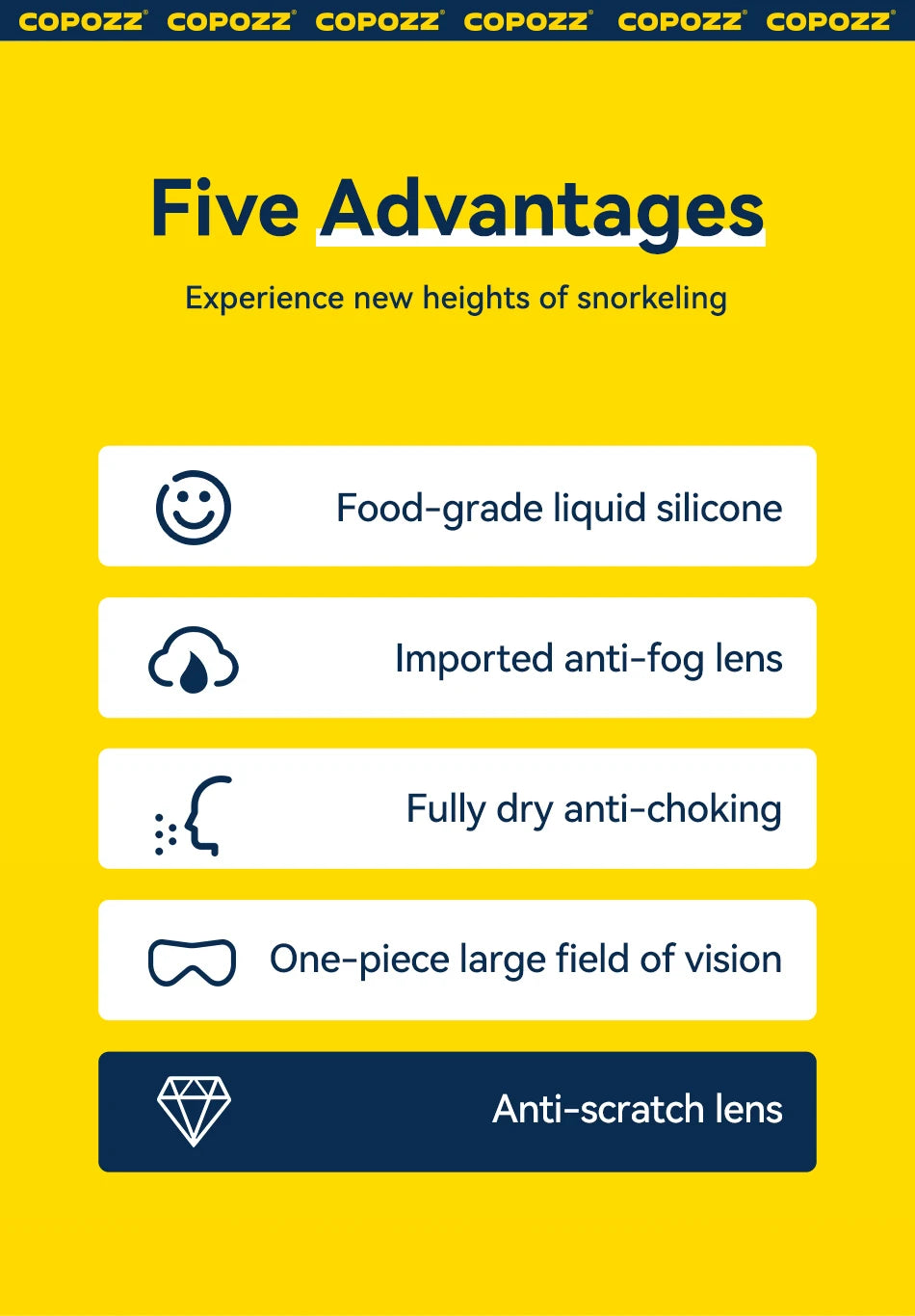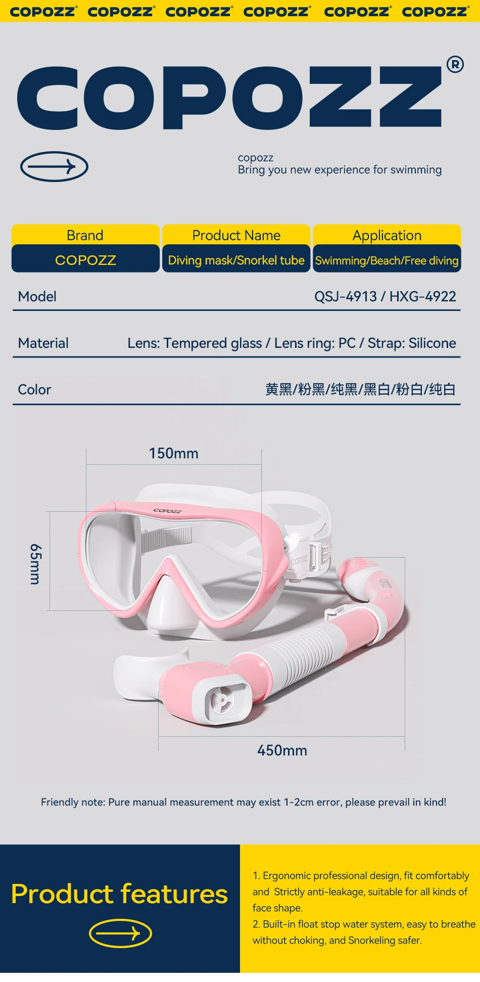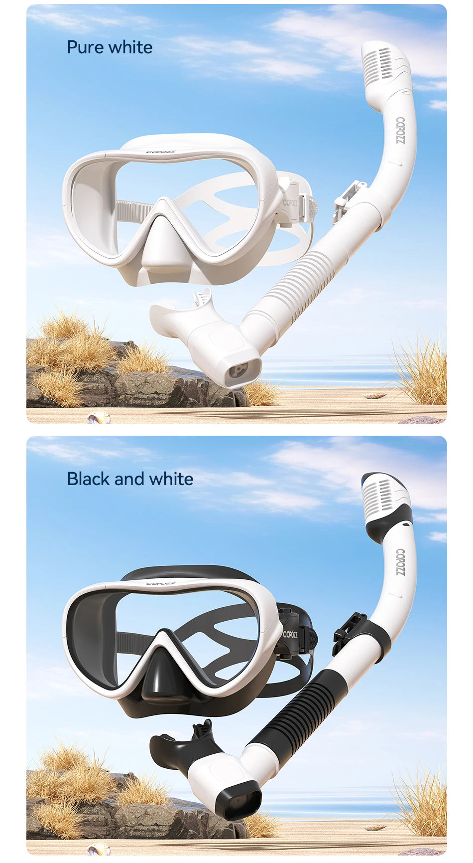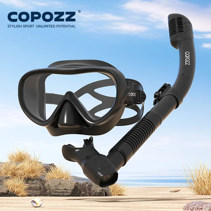 COPOZZ Professional Diving Mask Full Vision Mask Underwater Snorkel Mask Set Swimming Snorkel HD Anti Fog Diving Equipment