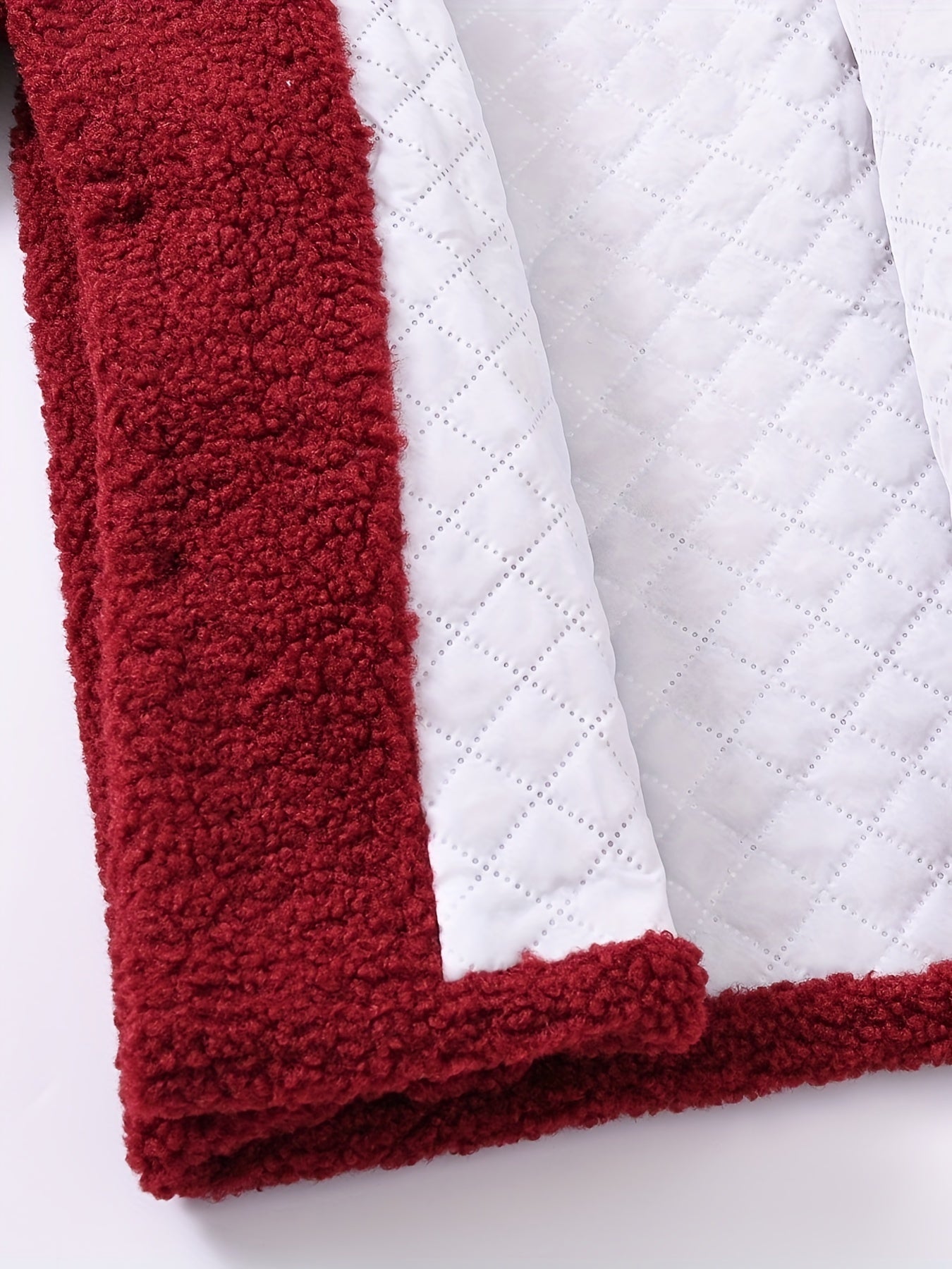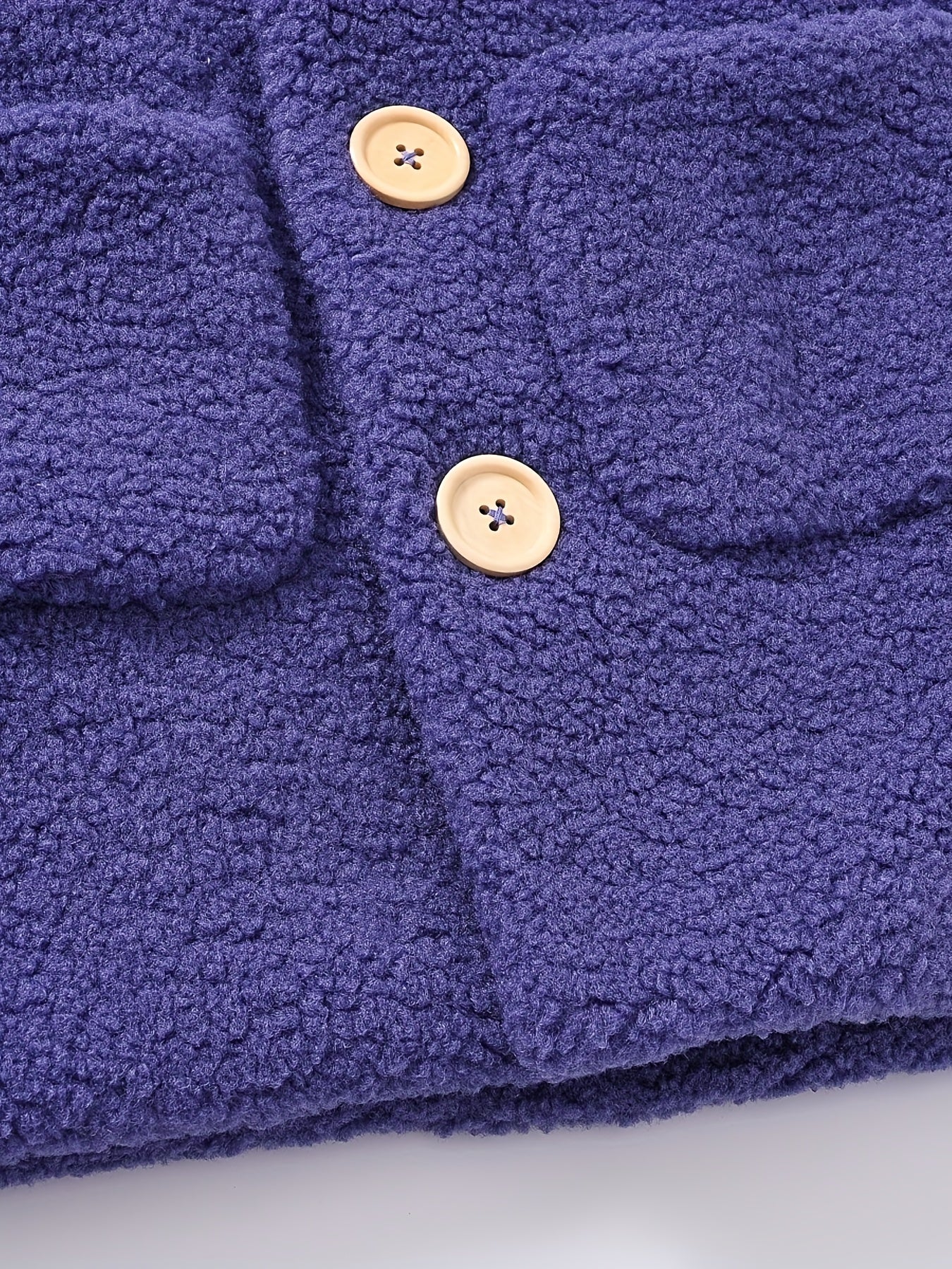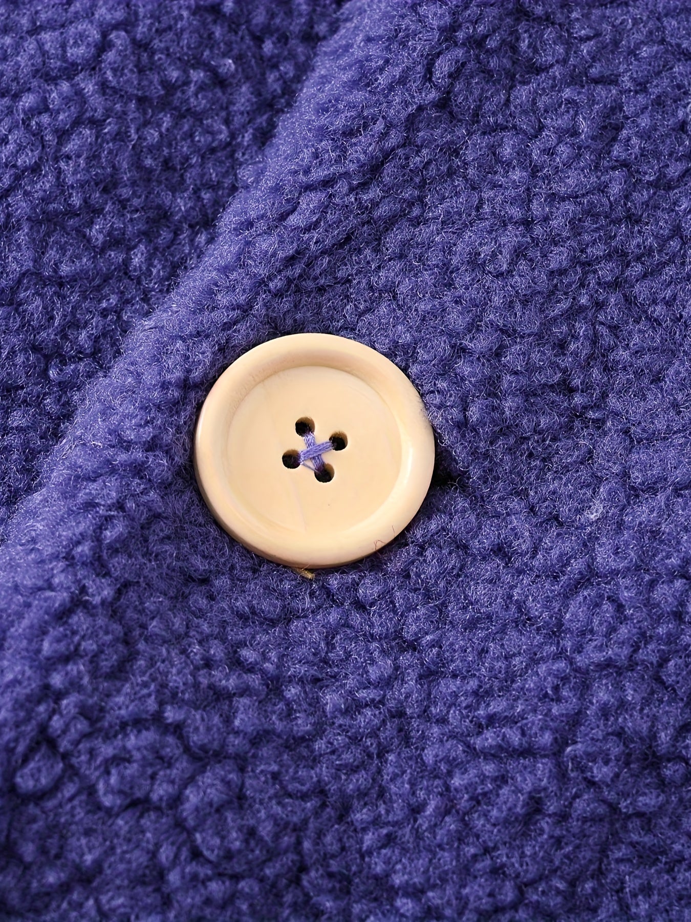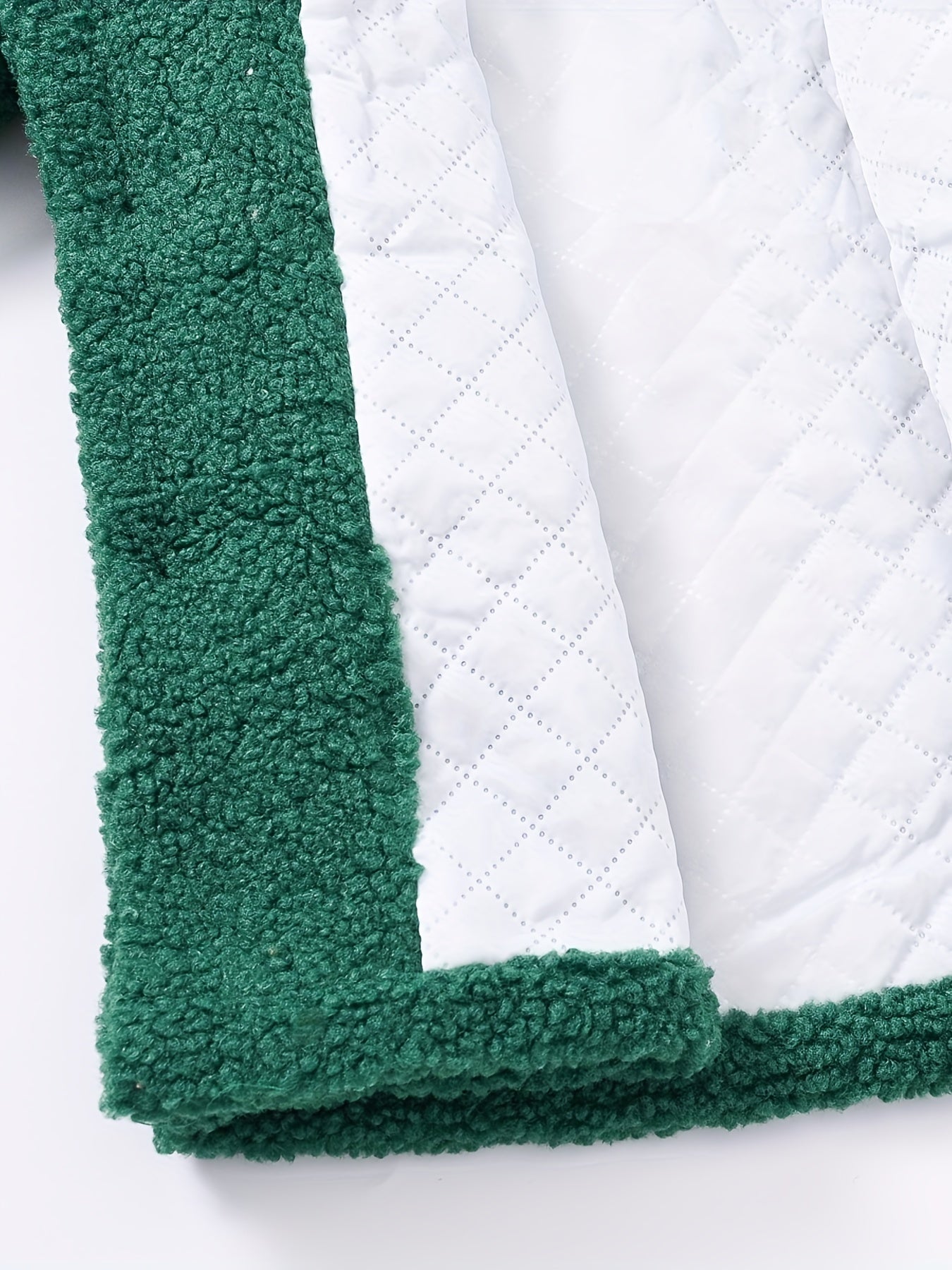 [Cozy Fleece Jacket] Cozy Fleece Jacket for Girls - Two-Tone Color Block with Plush Lining, Long Sleeves & Button Front, Casual Korean Style Winter Outerwear | Button-Up Front Jacket | Plush Lining Jacket