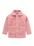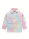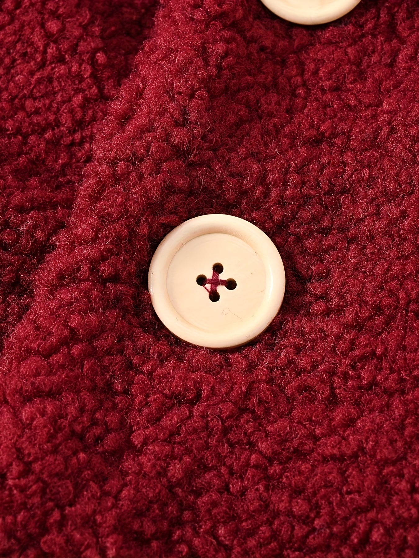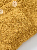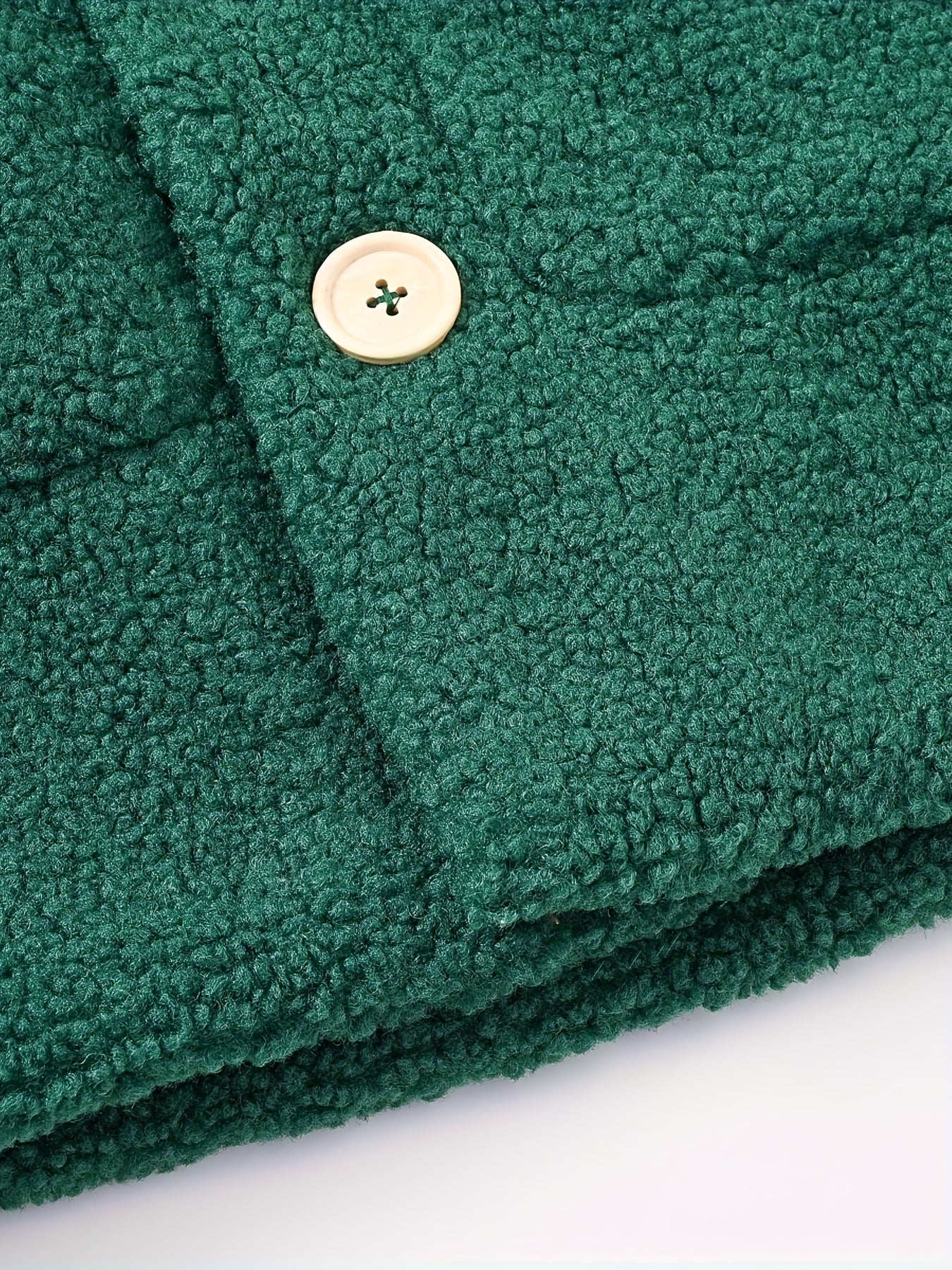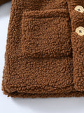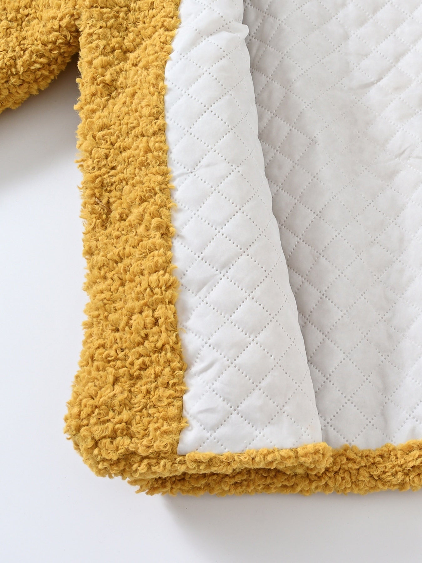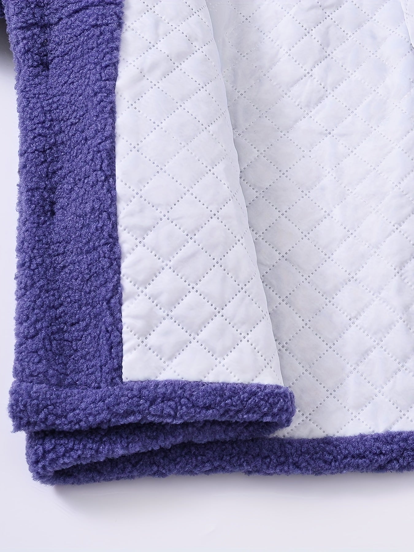 [Cozy Fleece Jacket] Cozy Fleece Jacket for Girls - Two-Tone Color Block with Plush Lining, Long Sleeves & Button Front, Casual Korean Style Winter Outerwear | Button-Up Front Jacket | Plush Lining Jacket