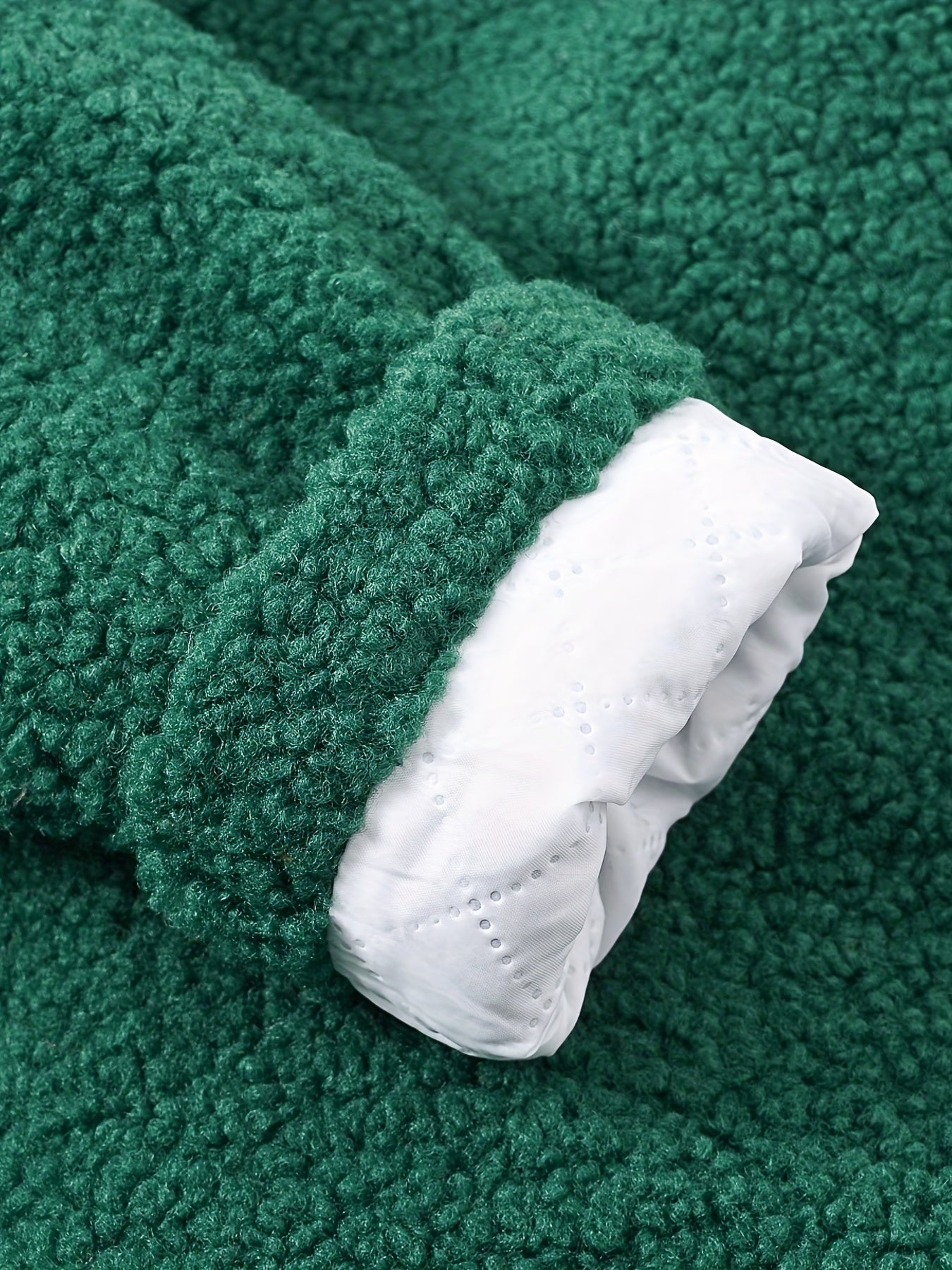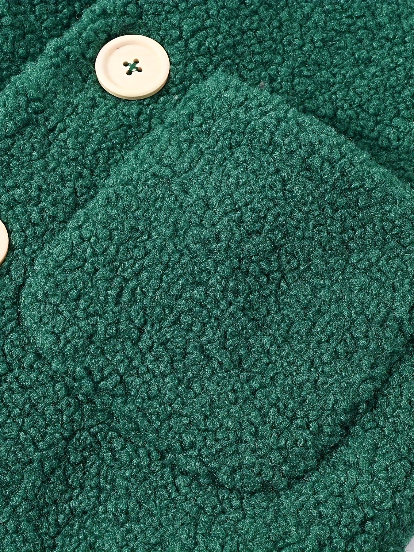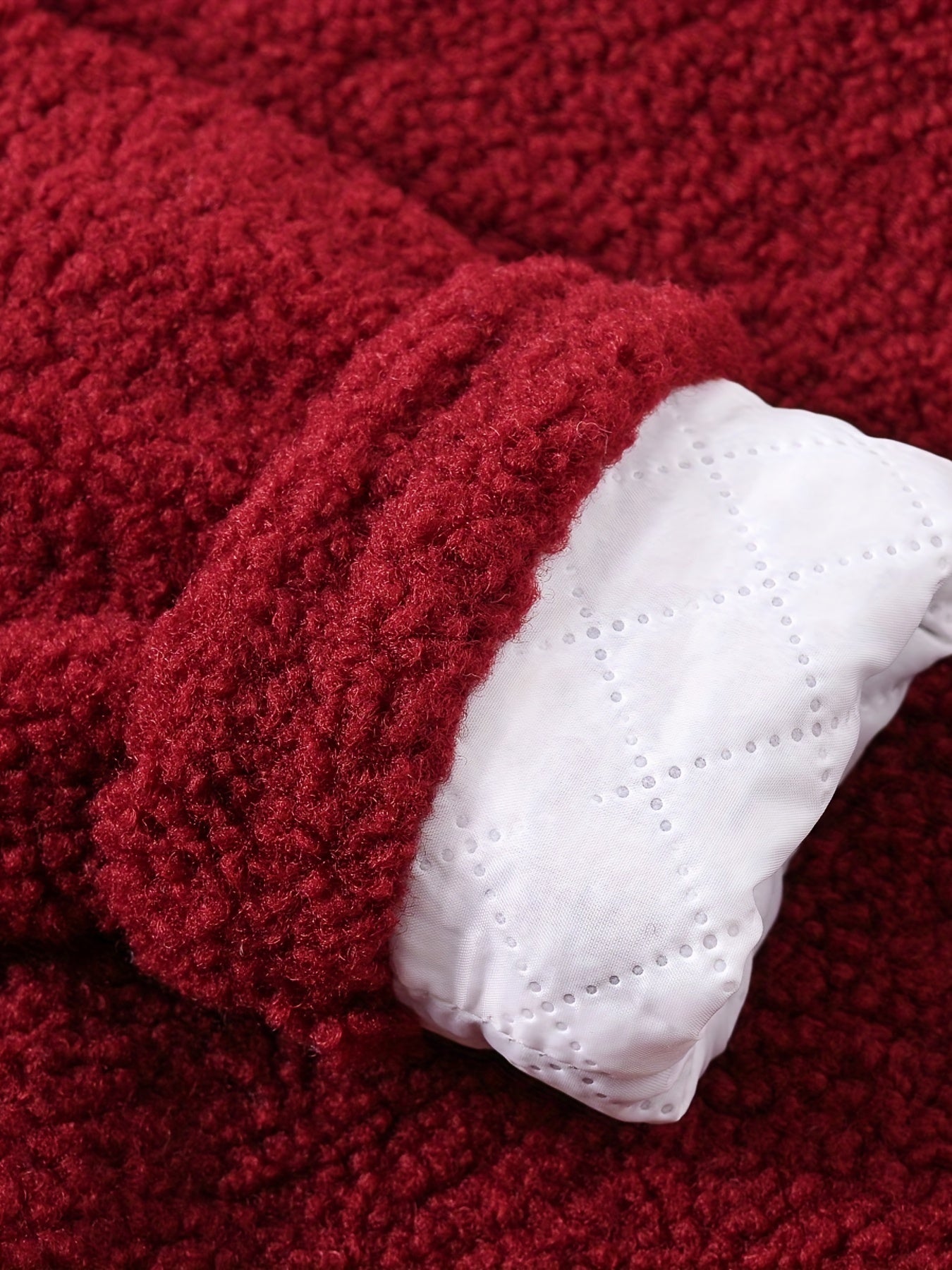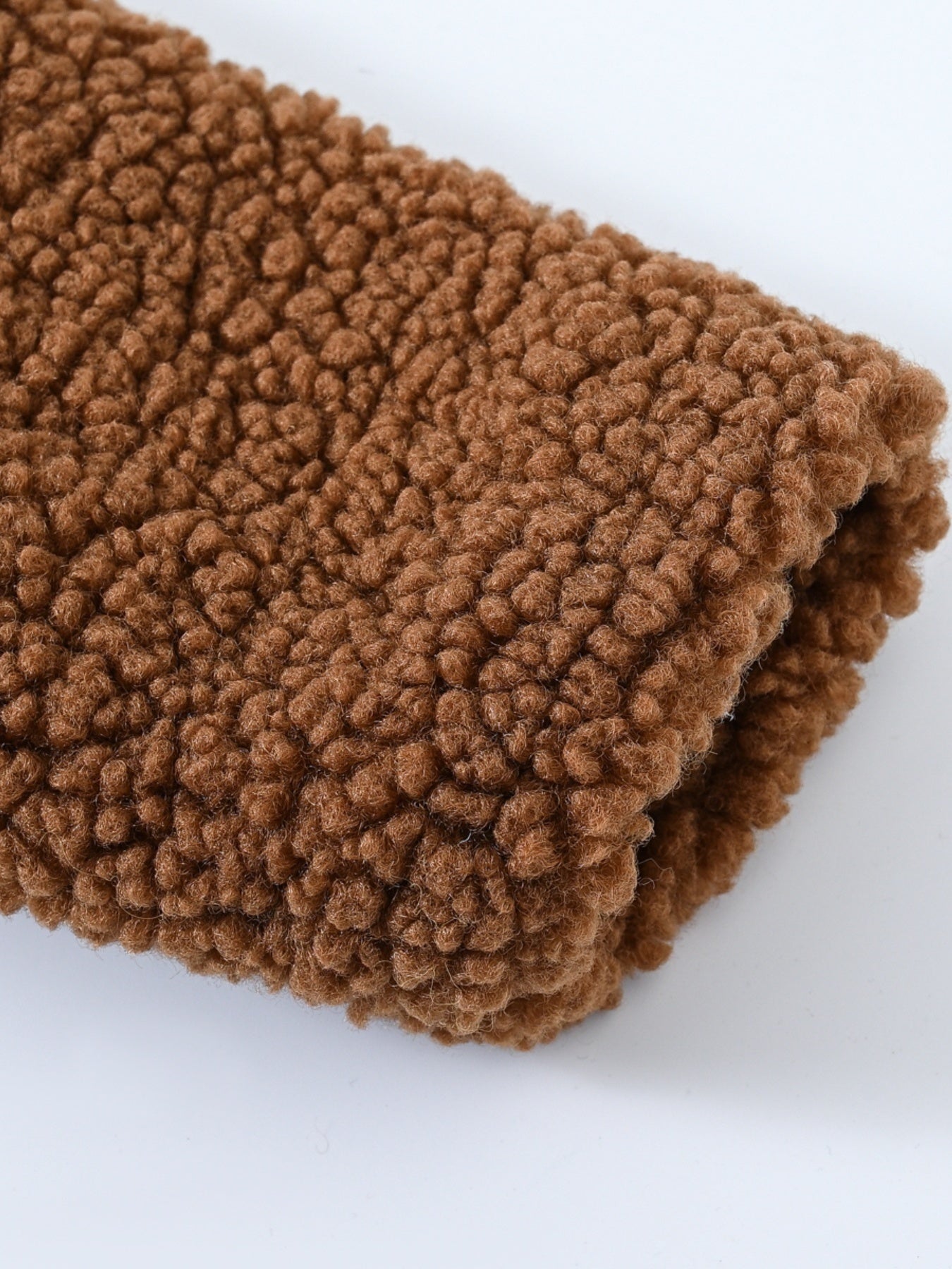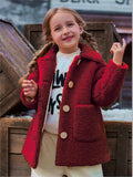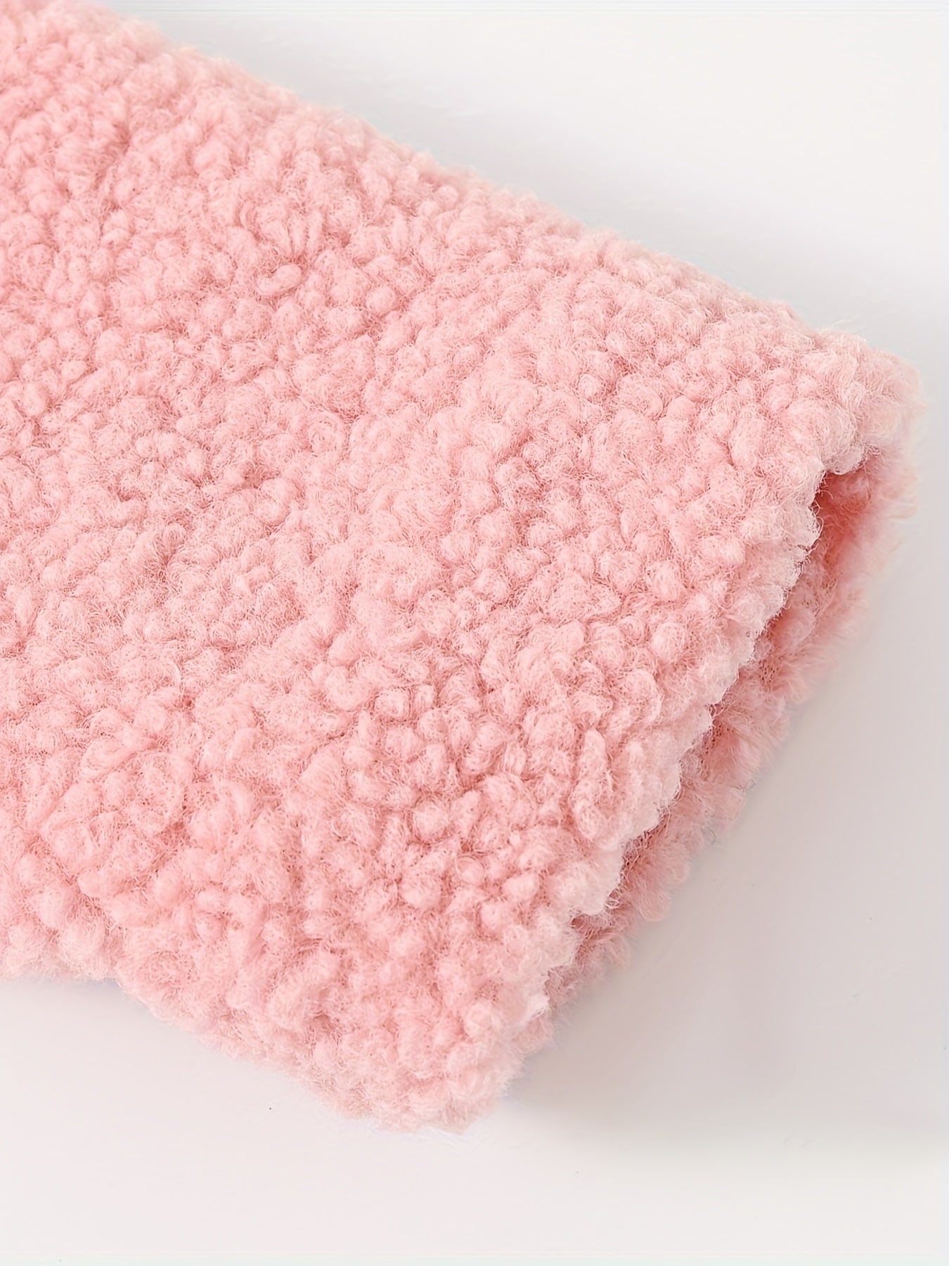 [Cozy Fleece Jacket] Cozy Fleece Jacket for Girls - Two-Tone Color Block with Plush Lining, Long Sleeves & Button Front, Casual Korean Style Winter Outerwear | Button-Up Front Jacket | Plush Lining Jacket