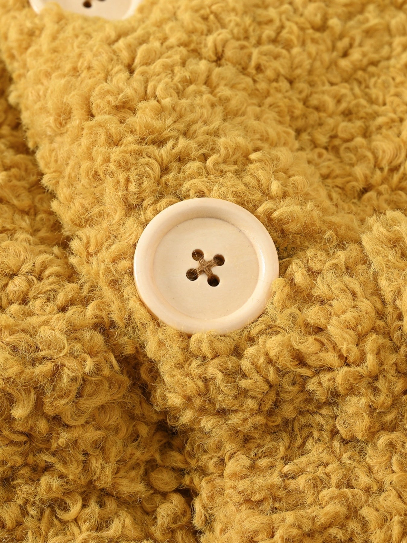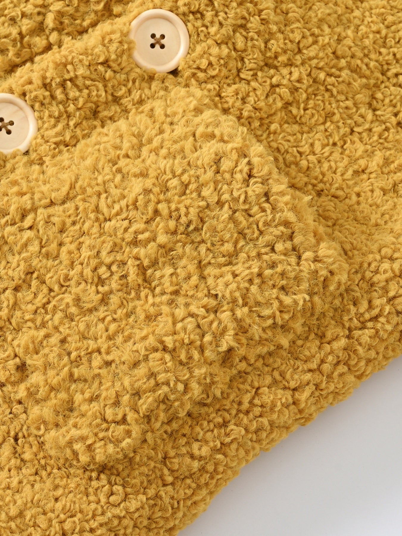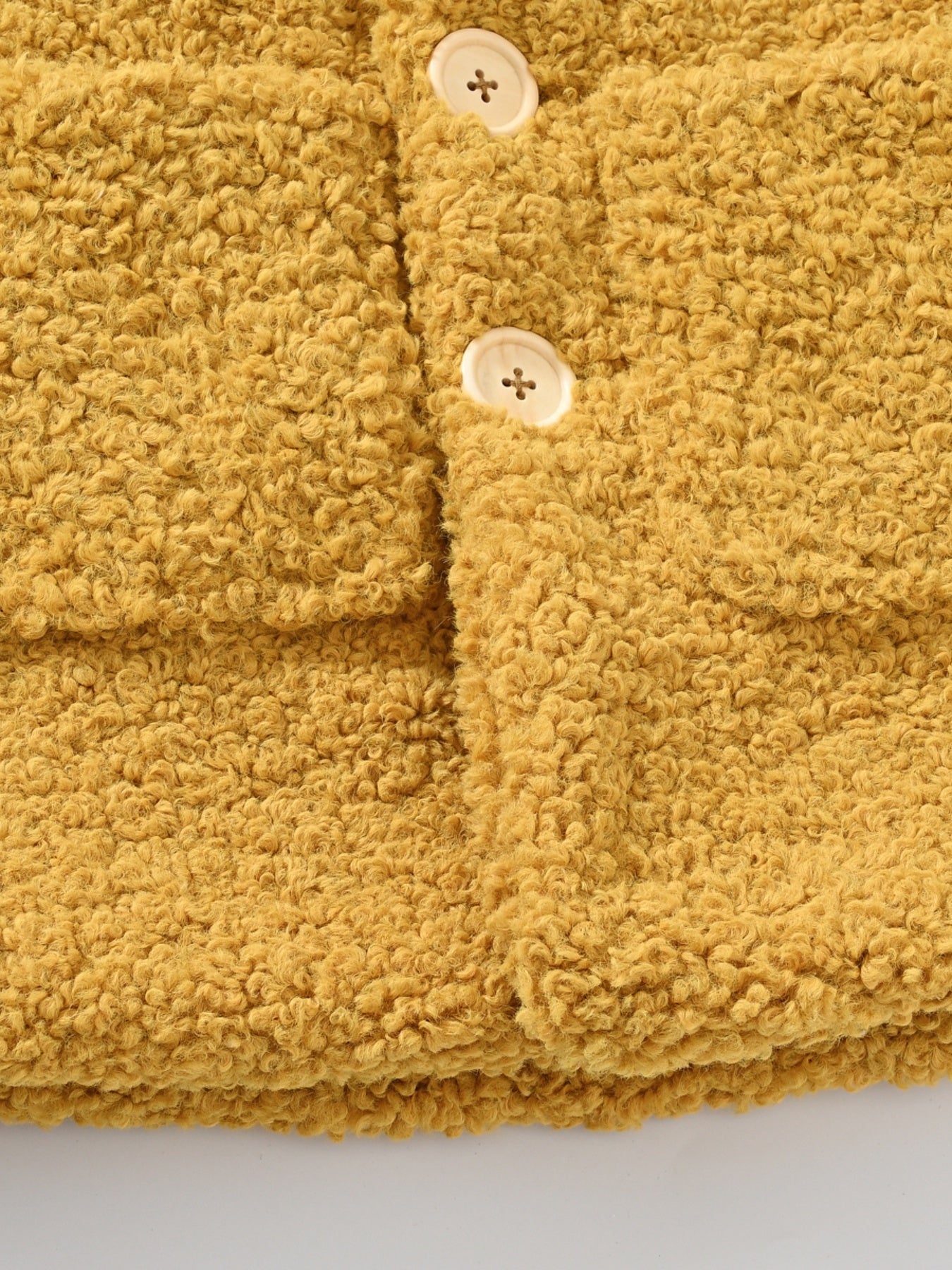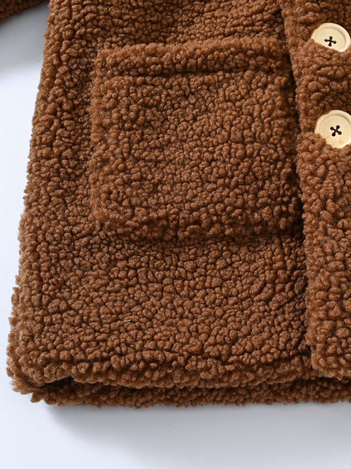 [Cozy Fleece Jacket] Cozy Fleece Jacket for Girls - Two-Tone Color Block with Plush Lining, Long Sleeves & Button Front, Casual Korean Style Winter Outerwear | Button-Up Front Jacket | Plush Lining Jacket