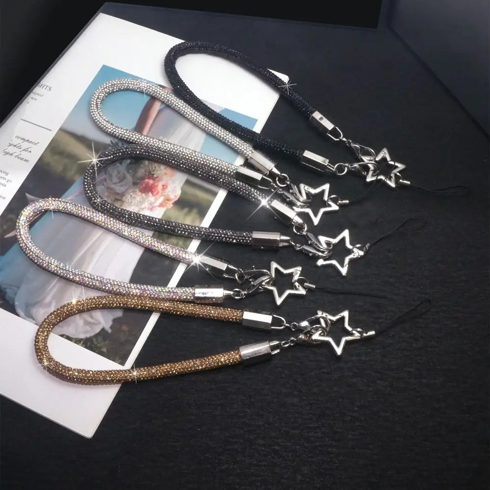 Crystal Rhinestone Phone Lanyard Glitter Bright Bling Bling Hanging Cord Phone Wrist Rope Phone Accessories