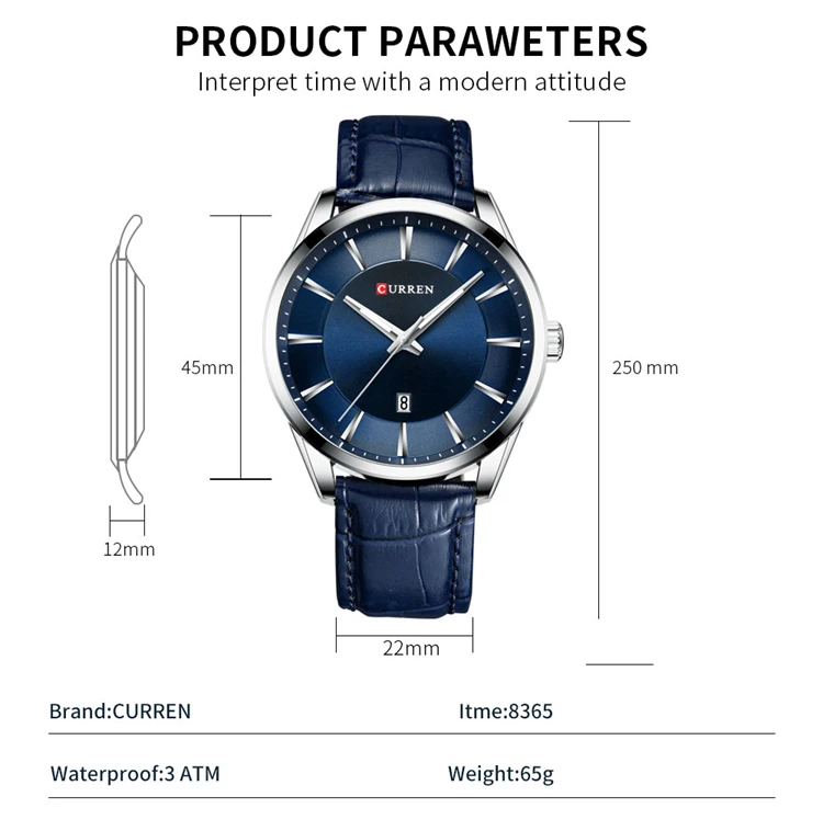 CURREN 8365 New Men Fashion Casual Watches Leather Strap Waterproof Clock Luxury Watch Simple Quartz Wristwatch for Man