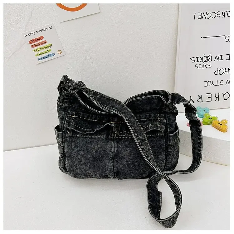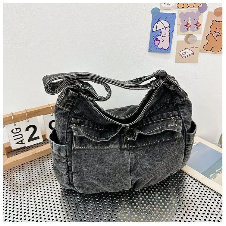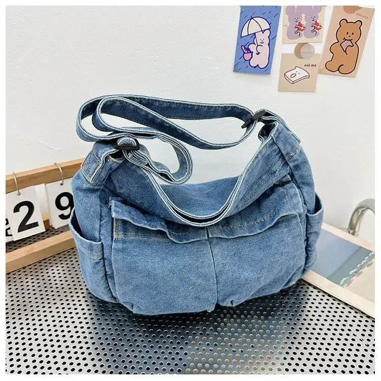 Denim Vintage Messenger Bag for Women Tote Handbag Fashion Jeans Crossbody Shoulder Bag Large Capacity Causal Ladies Satchel Bag