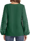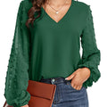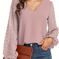 [Dot Sleeve Shirt For Spring] Swiss Dot Sleeve Shirt, Casual V Neck Solid Shirt For Spring & Fall, Women's Clothing