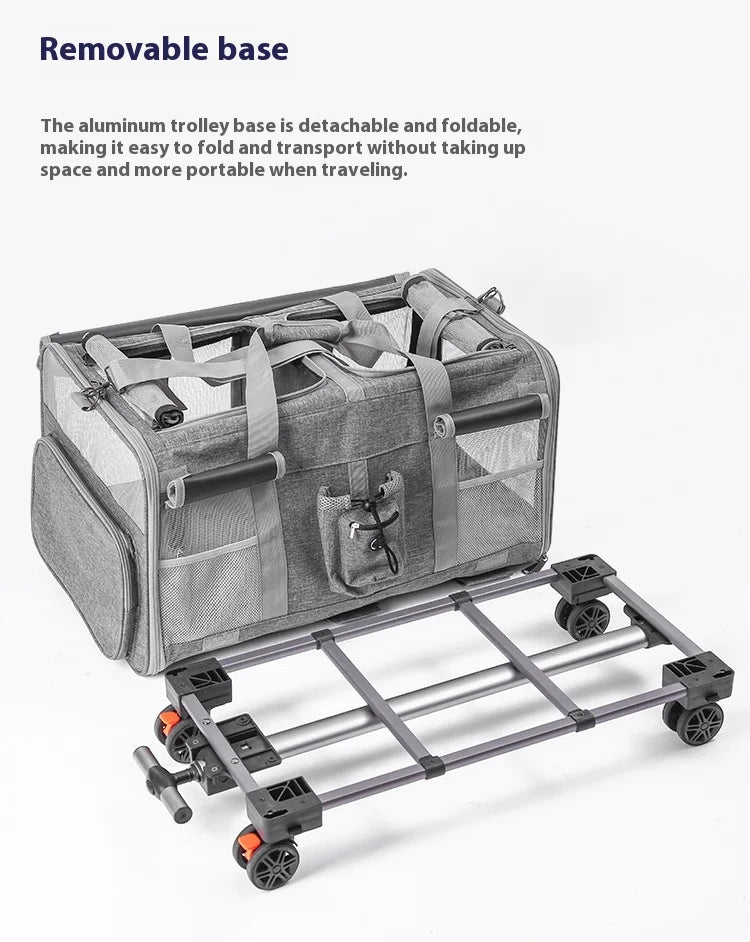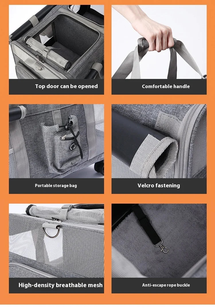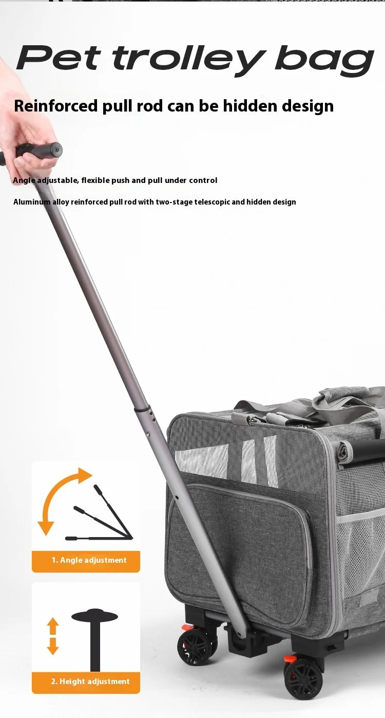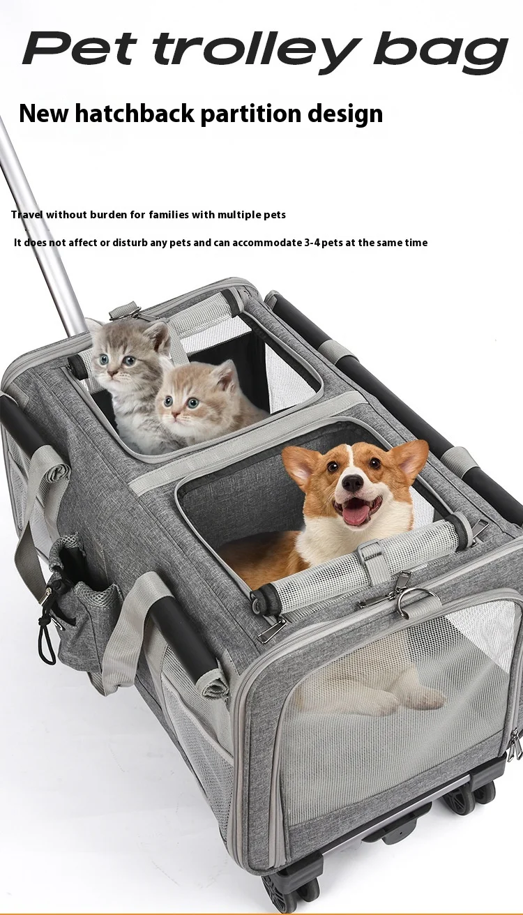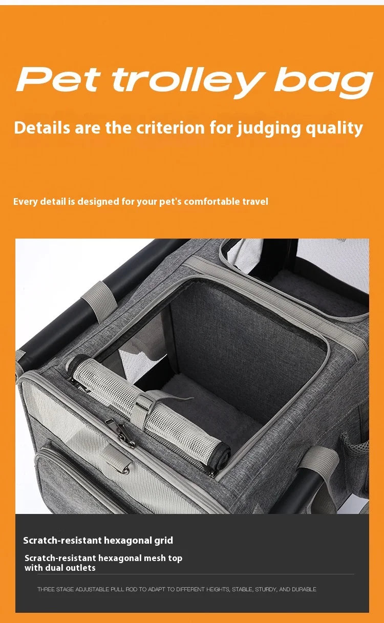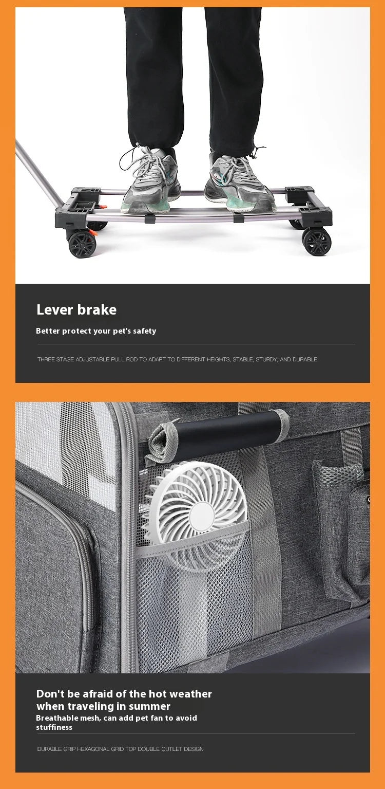 Double-layer Pet Stroller Cat Carrier Large Capacity Two Breathable Foldable Two-compartment Isolation Pet Trolley Box