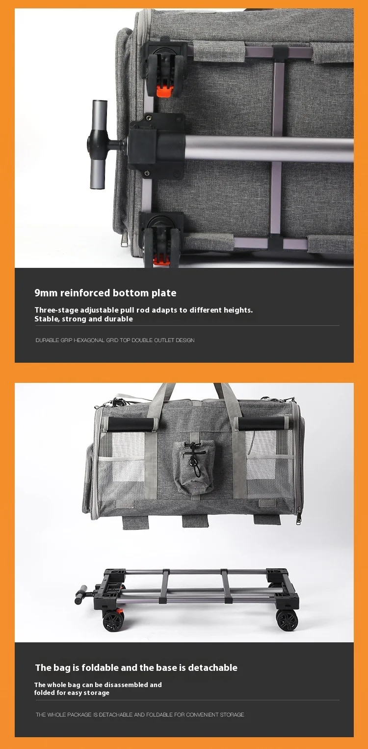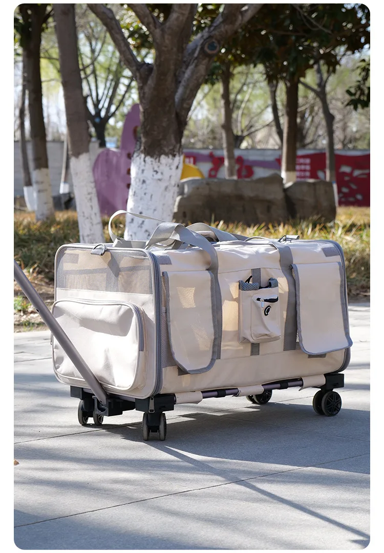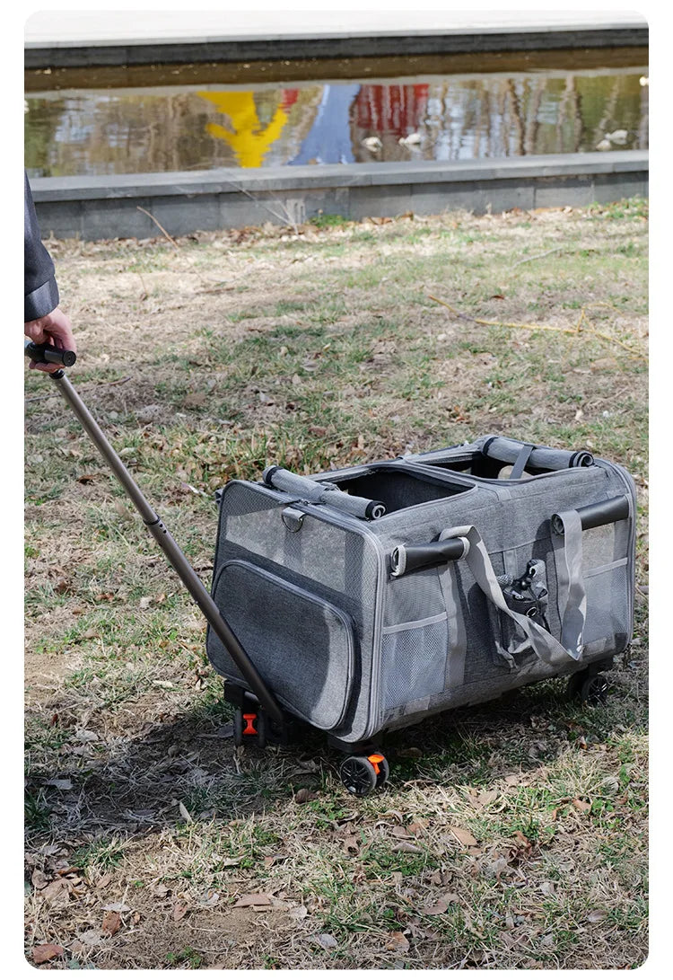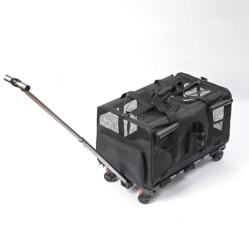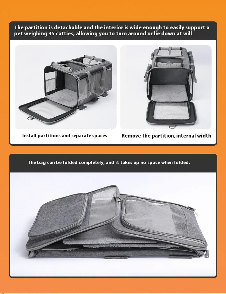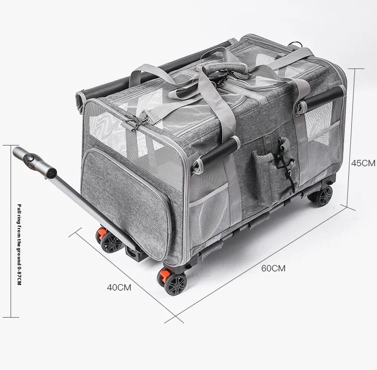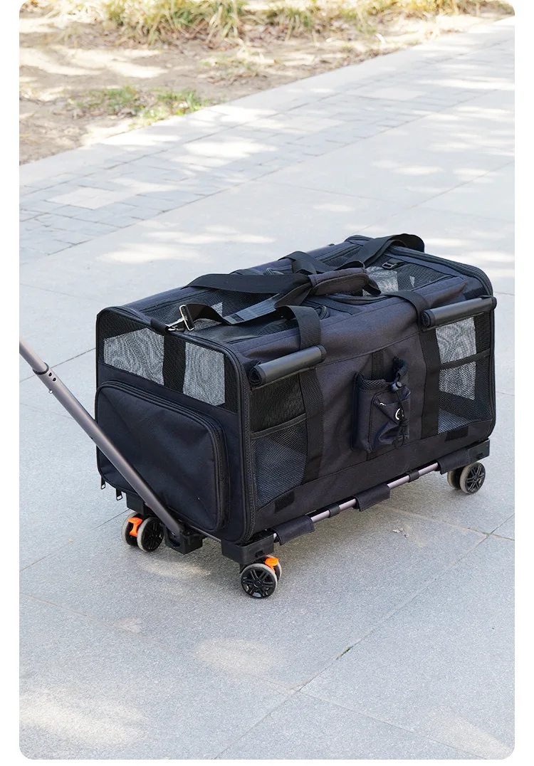 Double-layer Pet Stroller Cat Carrier Large Capacity Two Breathable Foldable Two-compartment Isolation Pet Trolley Box