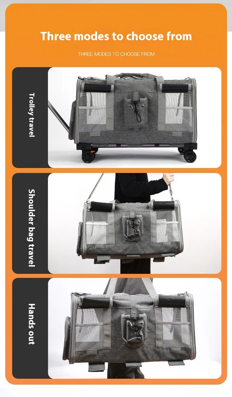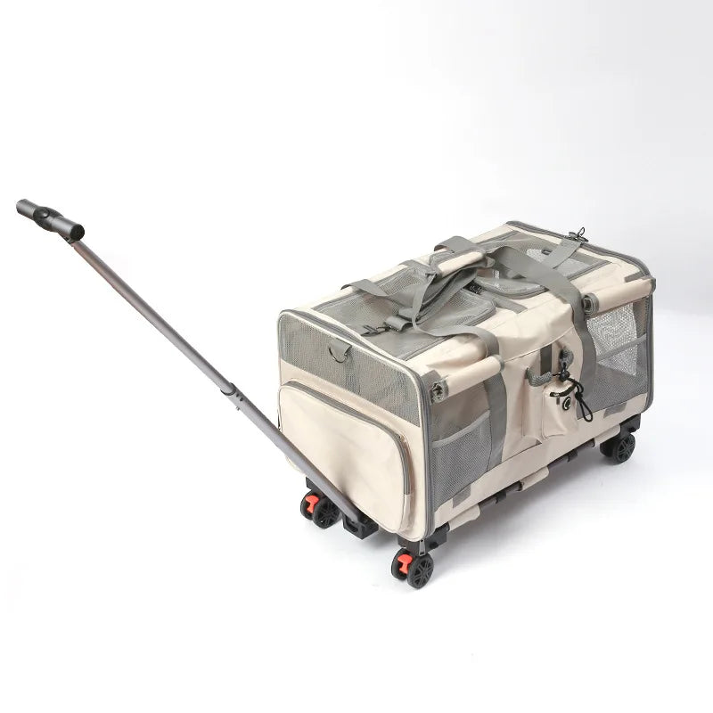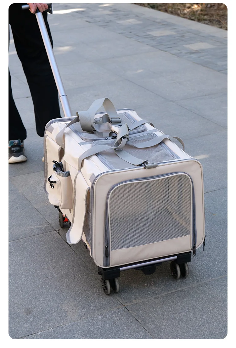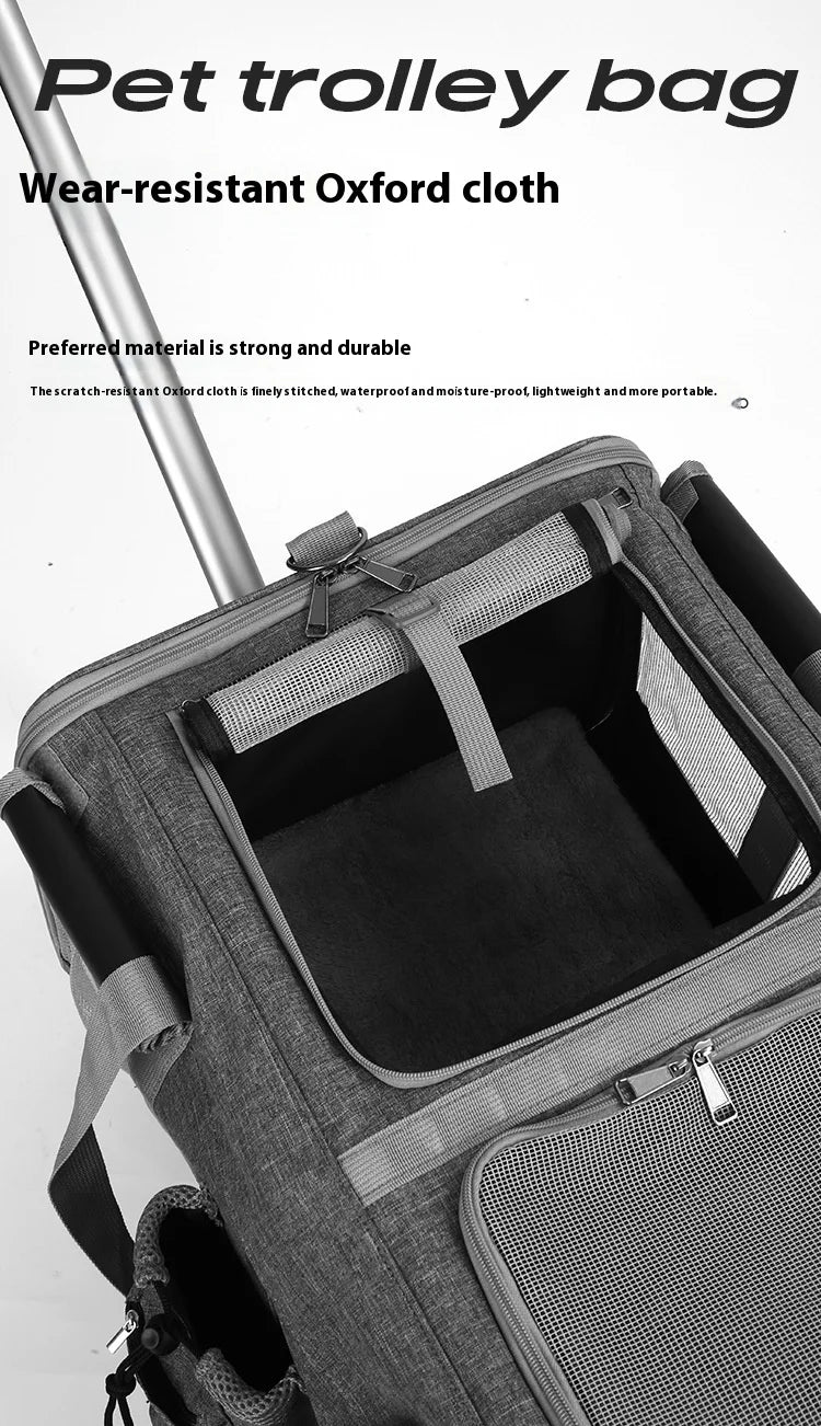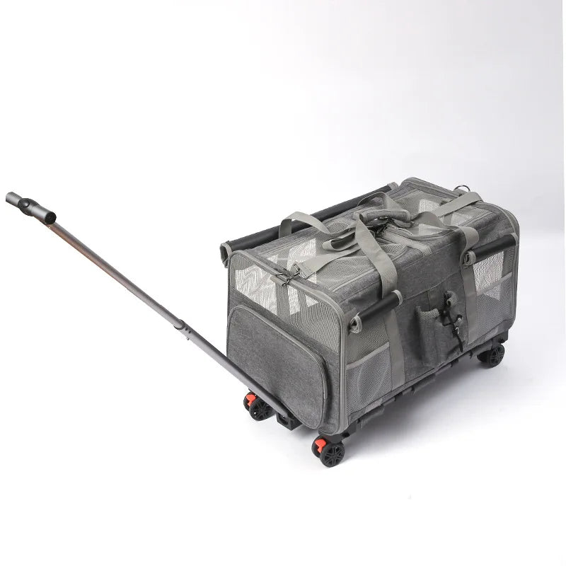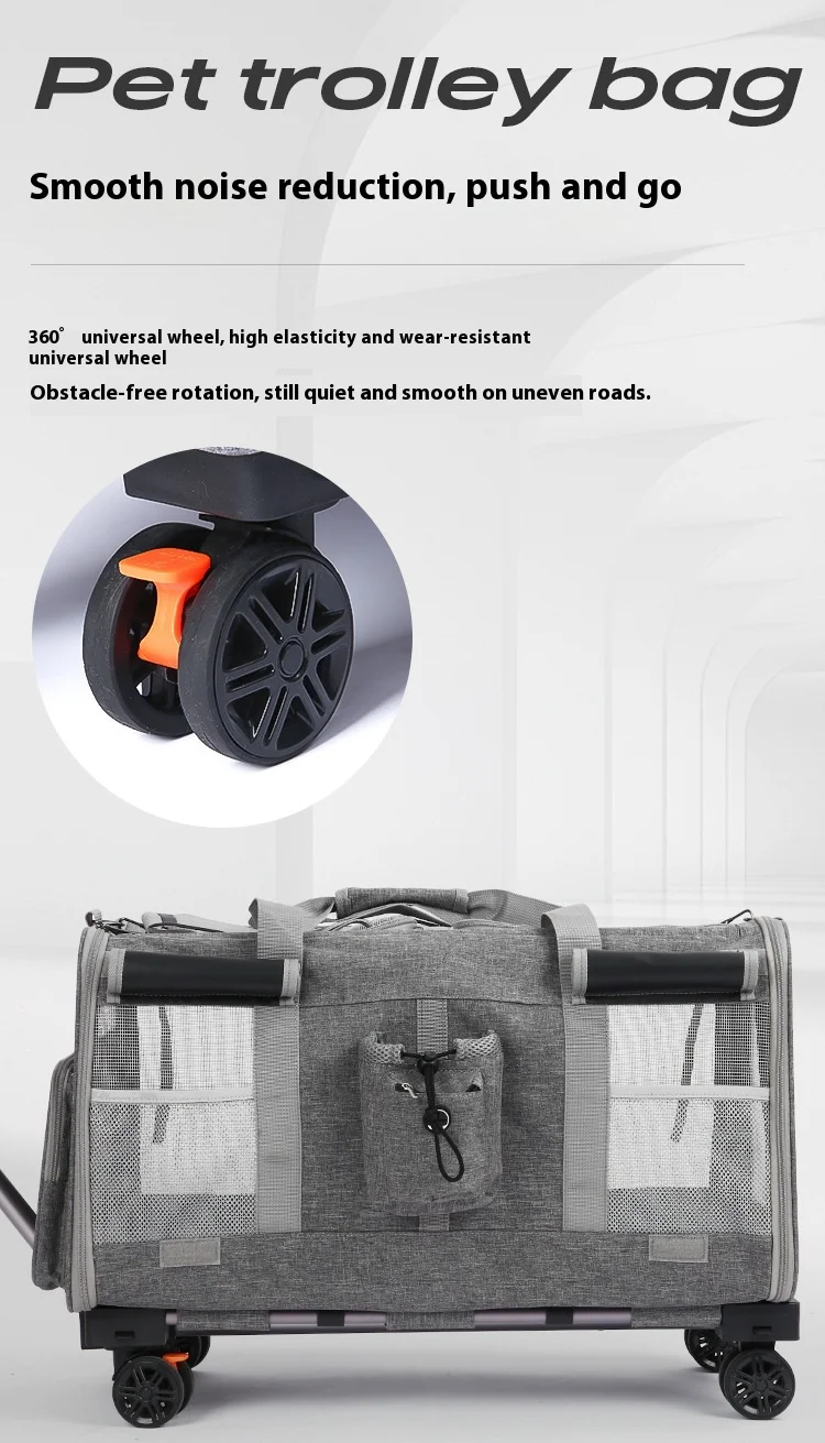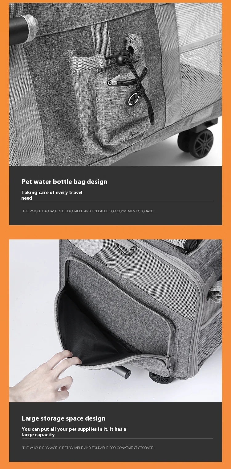 Double-layer Pet Stroller Cat Carrier Large Capacity Two Breathable Foldable Two-compartment Isolation Pet Trolley Box
