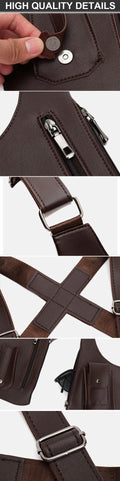 Double Shoulder Strap Multi-Pocket Outdoor Anti-Theft Tactical Fishing Bag Waterproof PU Multi-Purpose Men's Crossbody Bags
