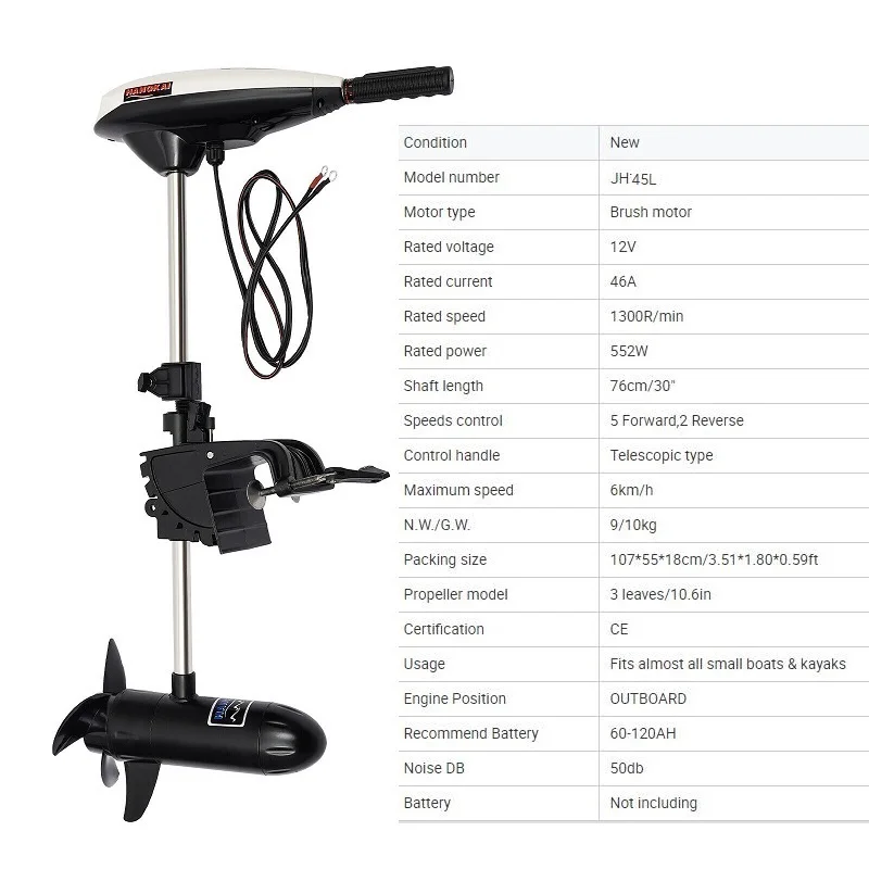 Durable Electric Engine 12V 45lbs Trolling Motor Outboard Brush Motor for Boat Fishing Electric Outboard