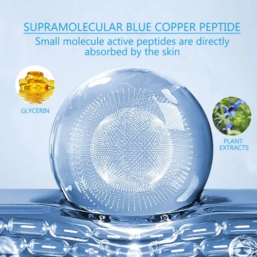 Our blue copper peptide aging cream contains glycerin, plant extracts. It can effectively brighten, soften and moisturize the face, fade fine lines and spots, tighten and brighten the skin, leaving it moist, clear and shiny. Its use method is very simple: 1. Wash your face with water and wipe it off. 2. Take the appropriate amount of paste and apply it to your cheeks. 3. Gently massage into the skin until absorbed. It can also enhance the elasticity of the skin, thus fading and reducing the appearance of fine lines and spots.