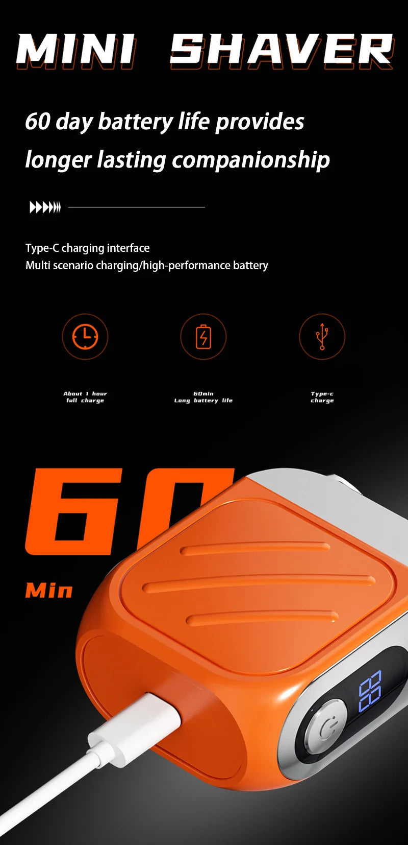 Long-lasting: Say goodbye to batteries. Our mini shaver is USB rechargeable, convenient and environmentally friendly. Charge anytime, anywhere. Charge for 30 minutes and use for 90 minutes.