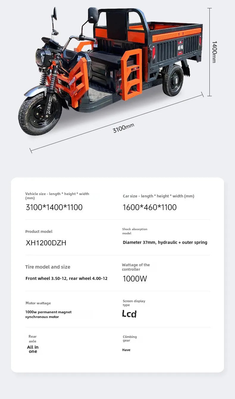 Electric Tricycle, Heavy-duty Dry Cargo Transportation, Agricultural Household Battery Car, High Power, Fast Charging Convenient