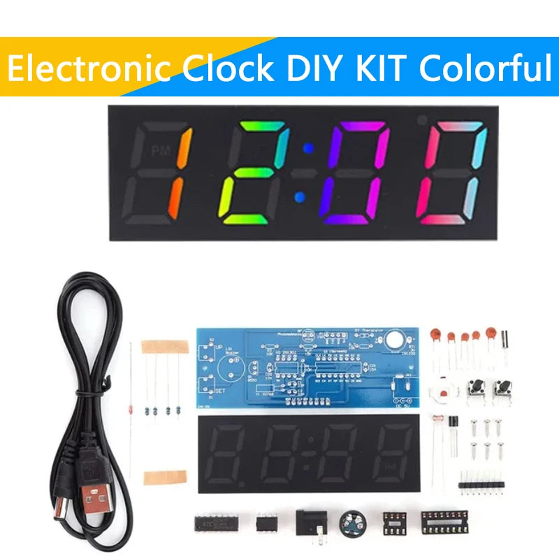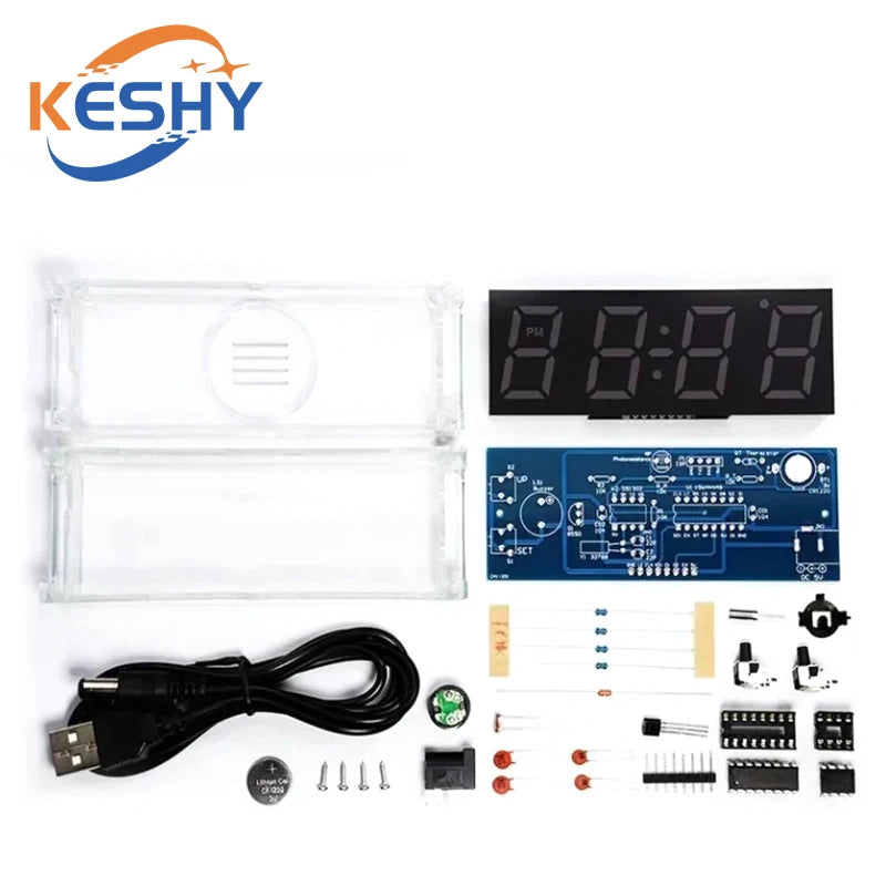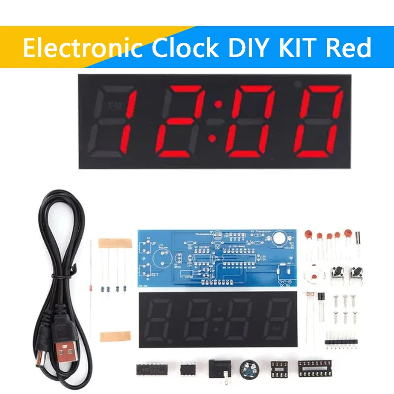 Electronic Clock DIY KIT LED Microcontroller Kit Digital Clock Time Light Control Temperature Thermometer Diy Electronic Kit