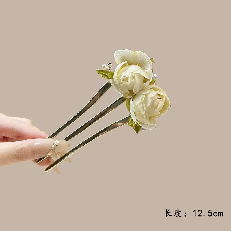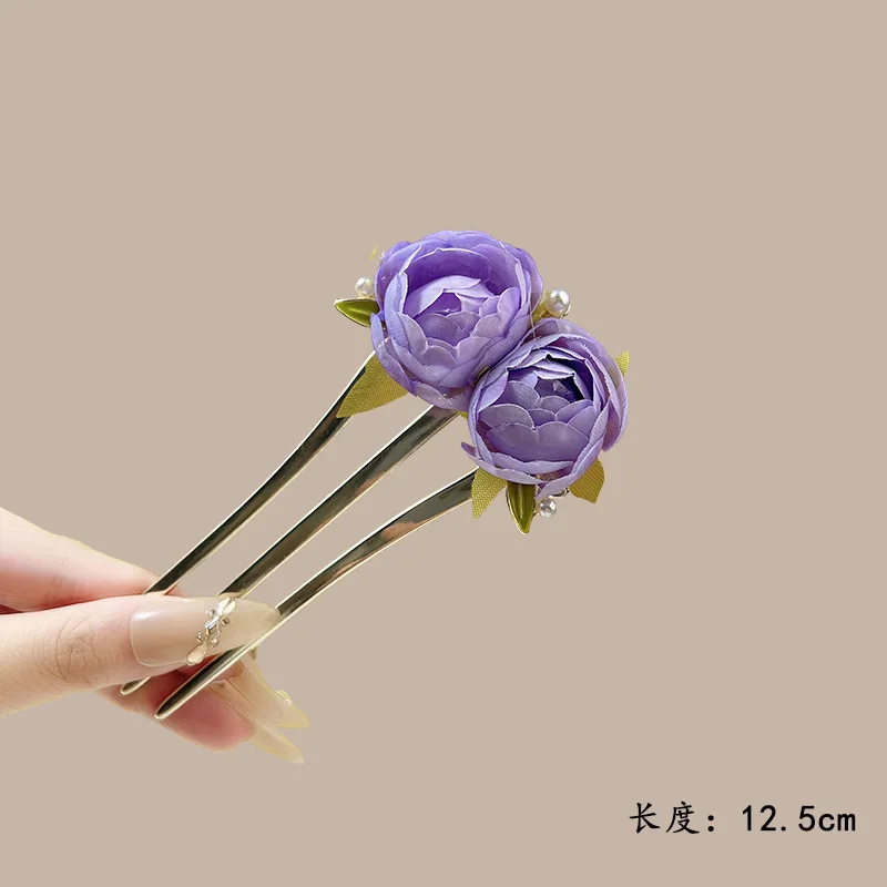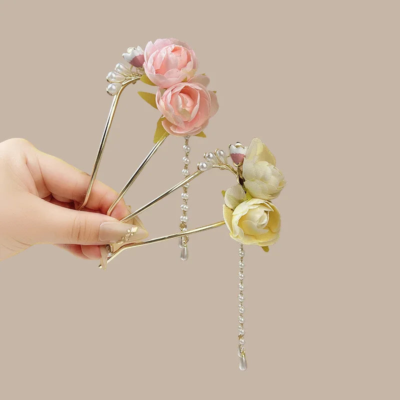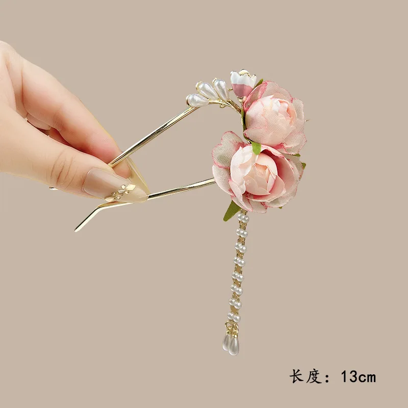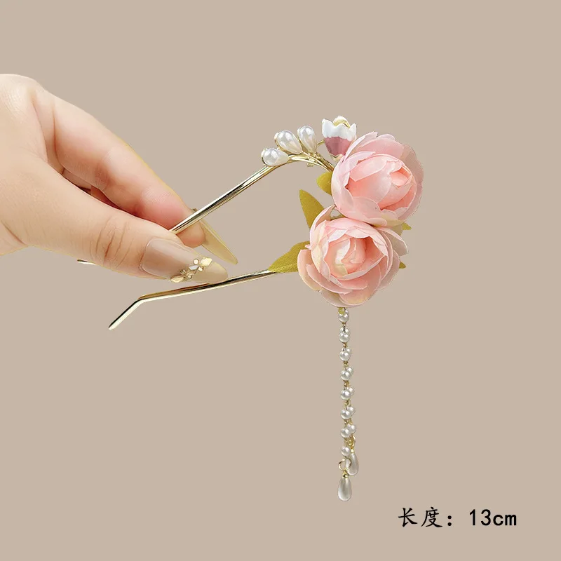 Elegant Flower Hairpin For Women Sweety Peony U Shaped Hair Stick Girls Fashionable Hair Accessories Gauze Floral Hair Pin NEW