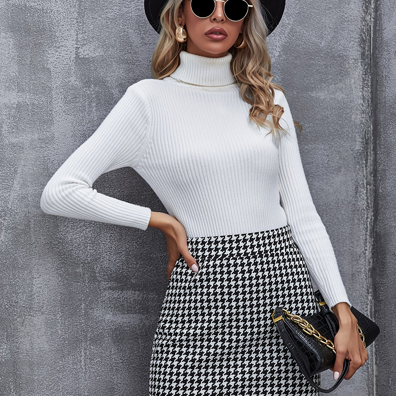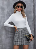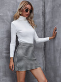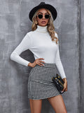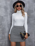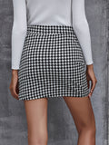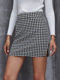 Elegant Houndstooth Skirt, Fashion High Waist Skirt For Work & Office, Women's Clothing