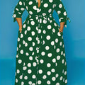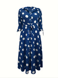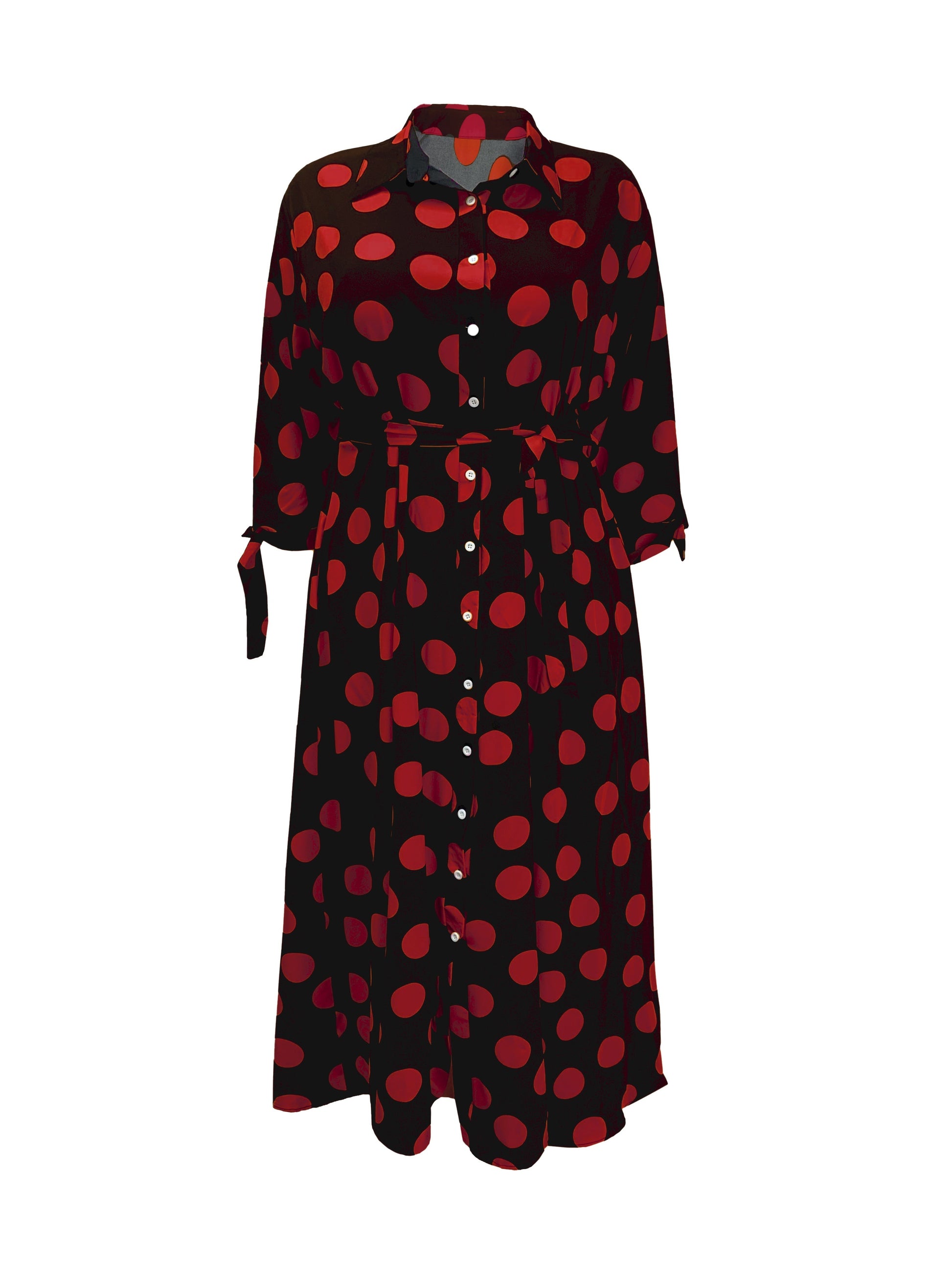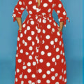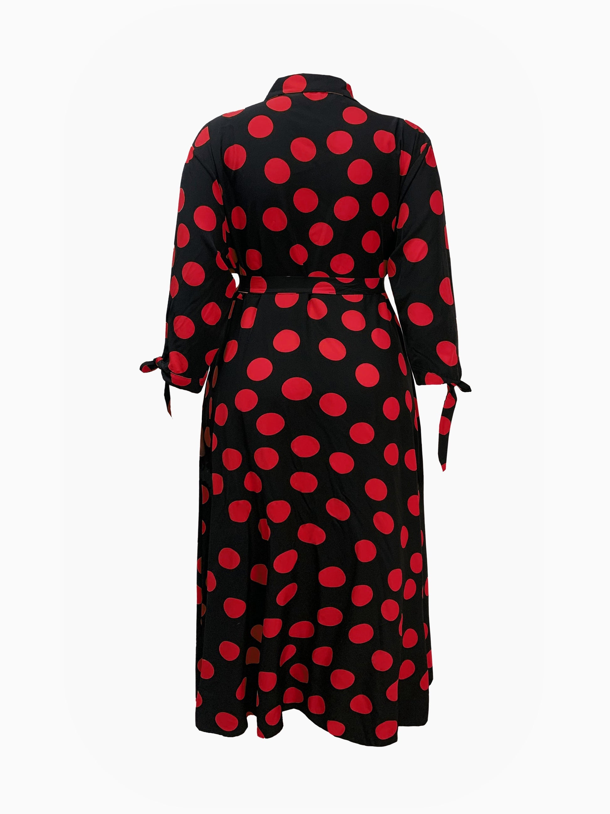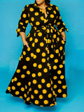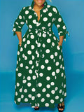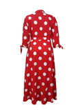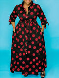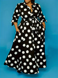 Elegant Plus Size Polka Dots Print Maxi Dress - Women's Button Up Collared Belted