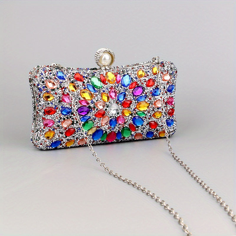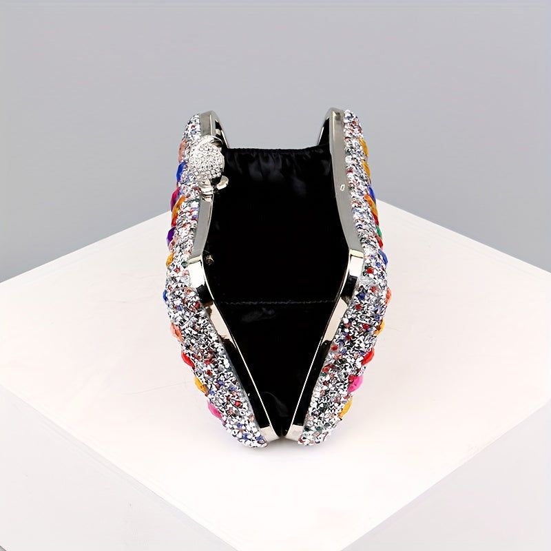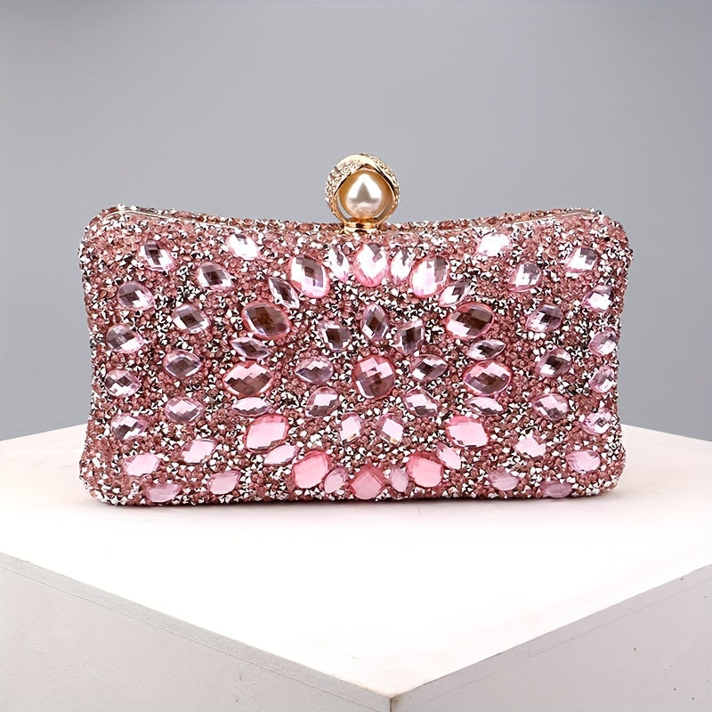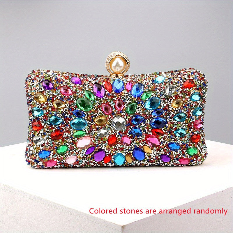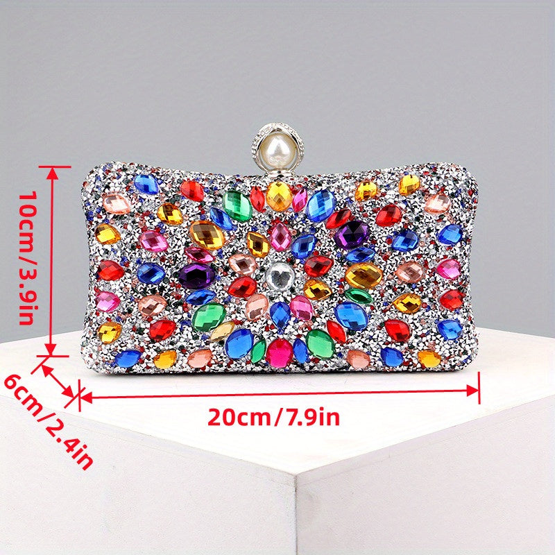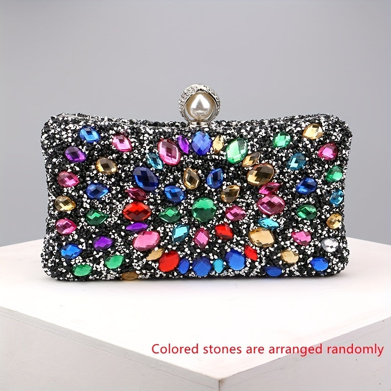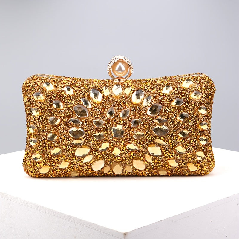Elegant Rhinestone & Polka-dot Clutch - Lightweight, Removable Strap, Festive Glitter Purse for Evening & Parties
