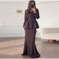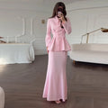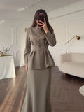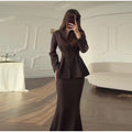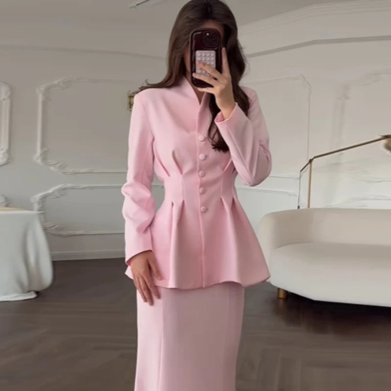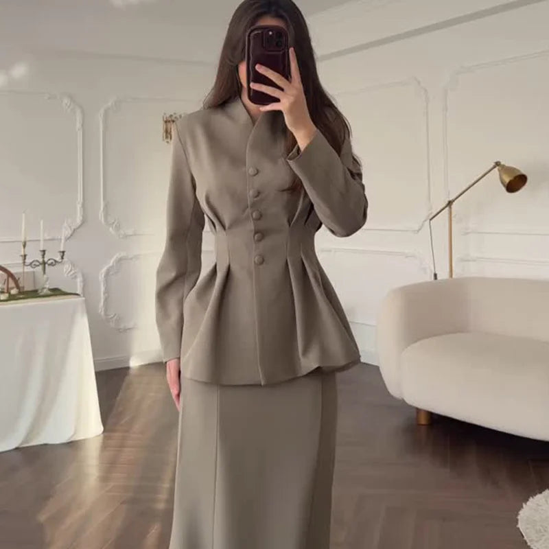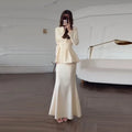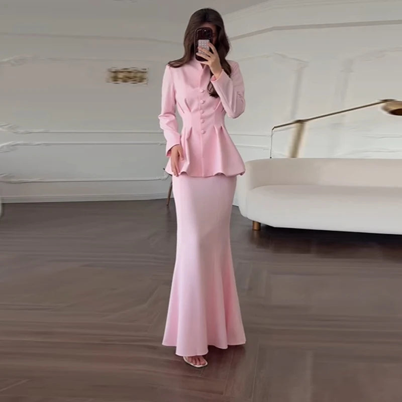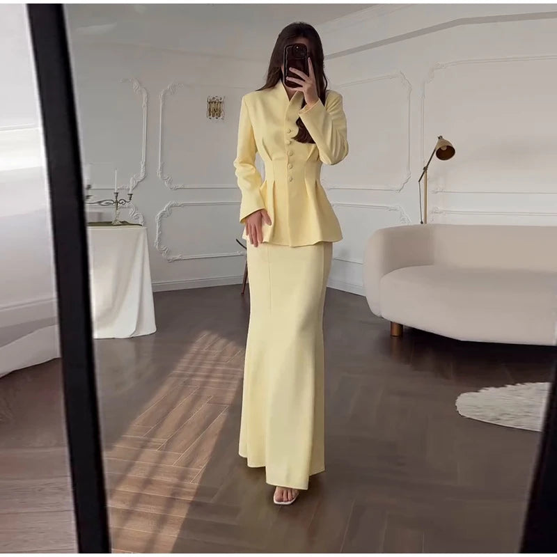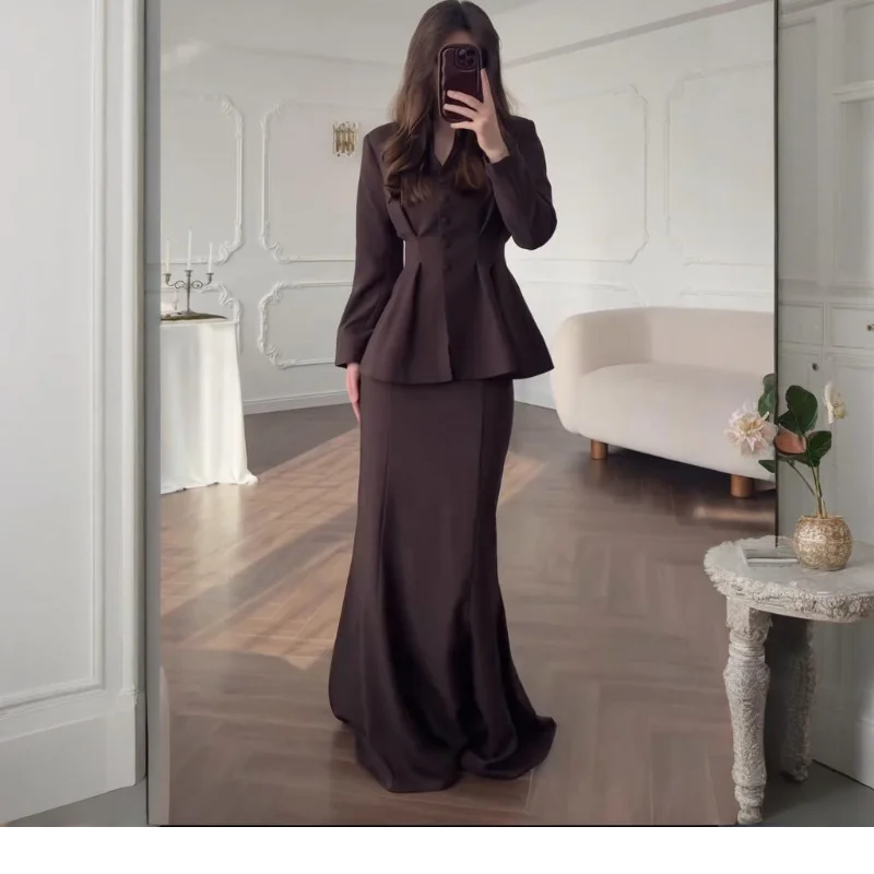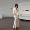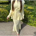 Elegant Single Breasted Shirt Long Skirt Set Women V-neck Long Sleeve Slim Fit Top Fishtail Skirts 2025 Autumn Commuter Outfit