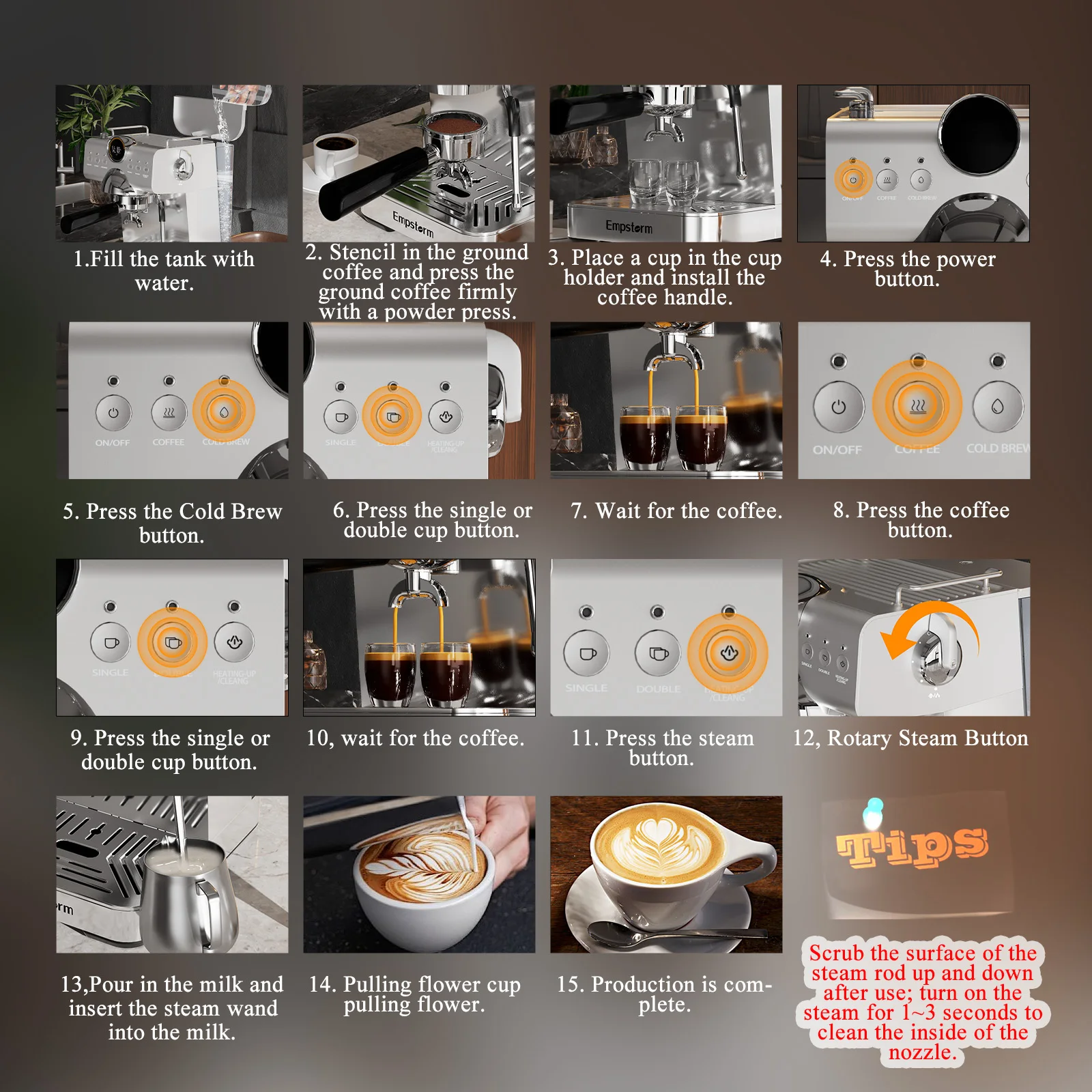 1.Cold/Hot Brew Coffee Can Be Chosen 2.Visible Extraction Pressure Display