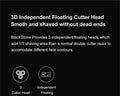 ● This razor has three sets of independently floating cutter heads, which add 1/3 shaving area than the ordinary double cutter razor. The cutter head has a smooth touch and elastic veneer to adapt to different face contours.