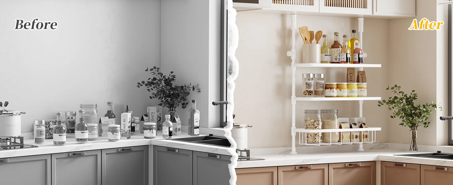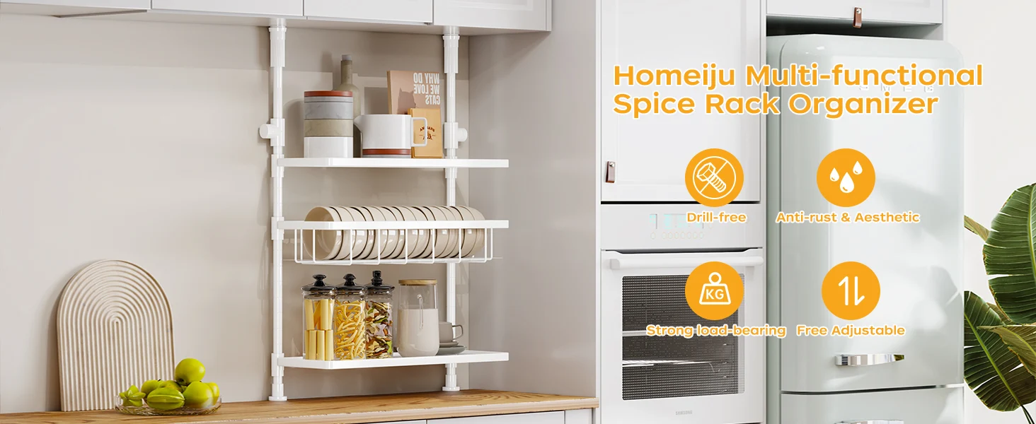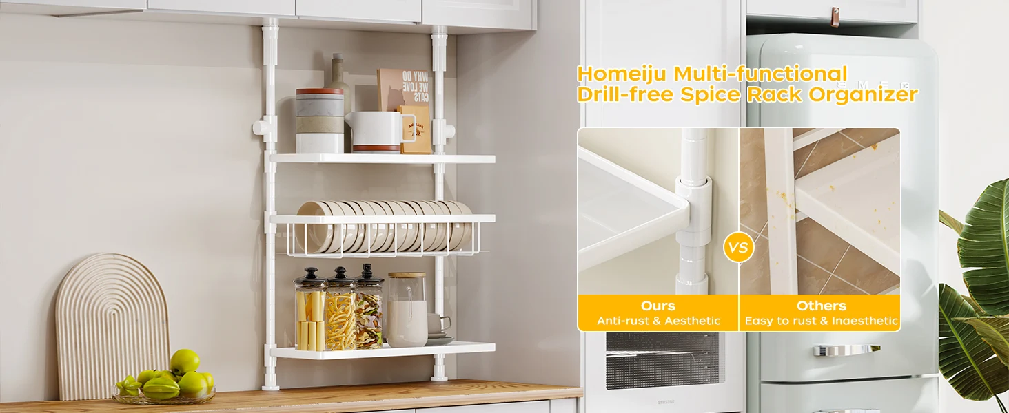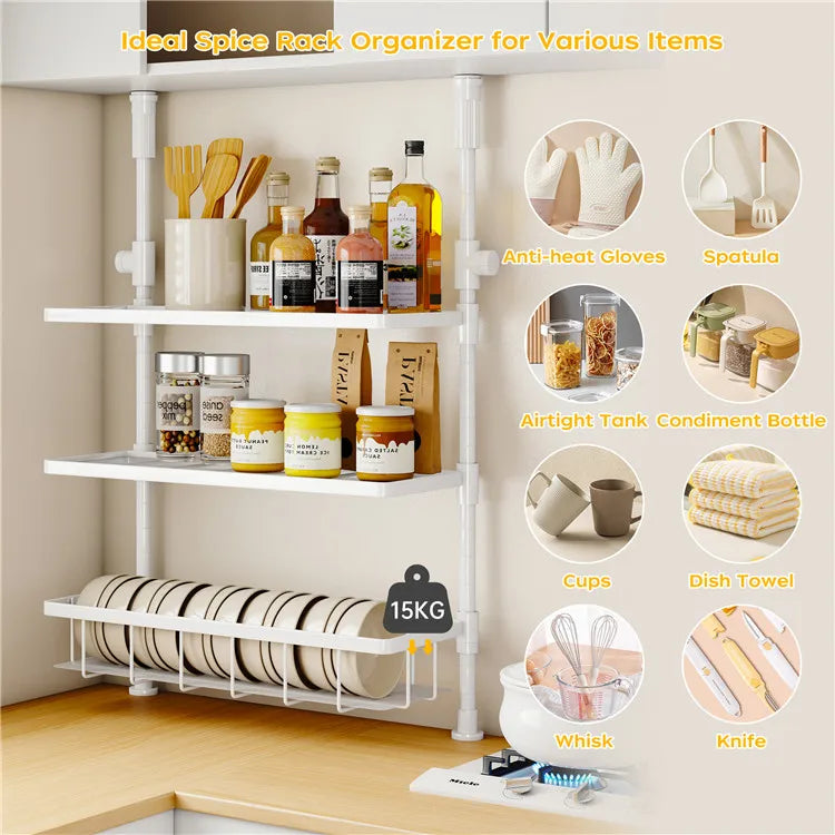 * Strong & Sturdy Construction - The spice rack organizer is made of sturdy metal, which can holds up to 22LBS, rugged and durable, it can store kitchen utensils and other kitchen items such as Bottles, Cans, Bowls, Plates, spice jars, Etc. It‘s a nice and perfect kitchen supplies.