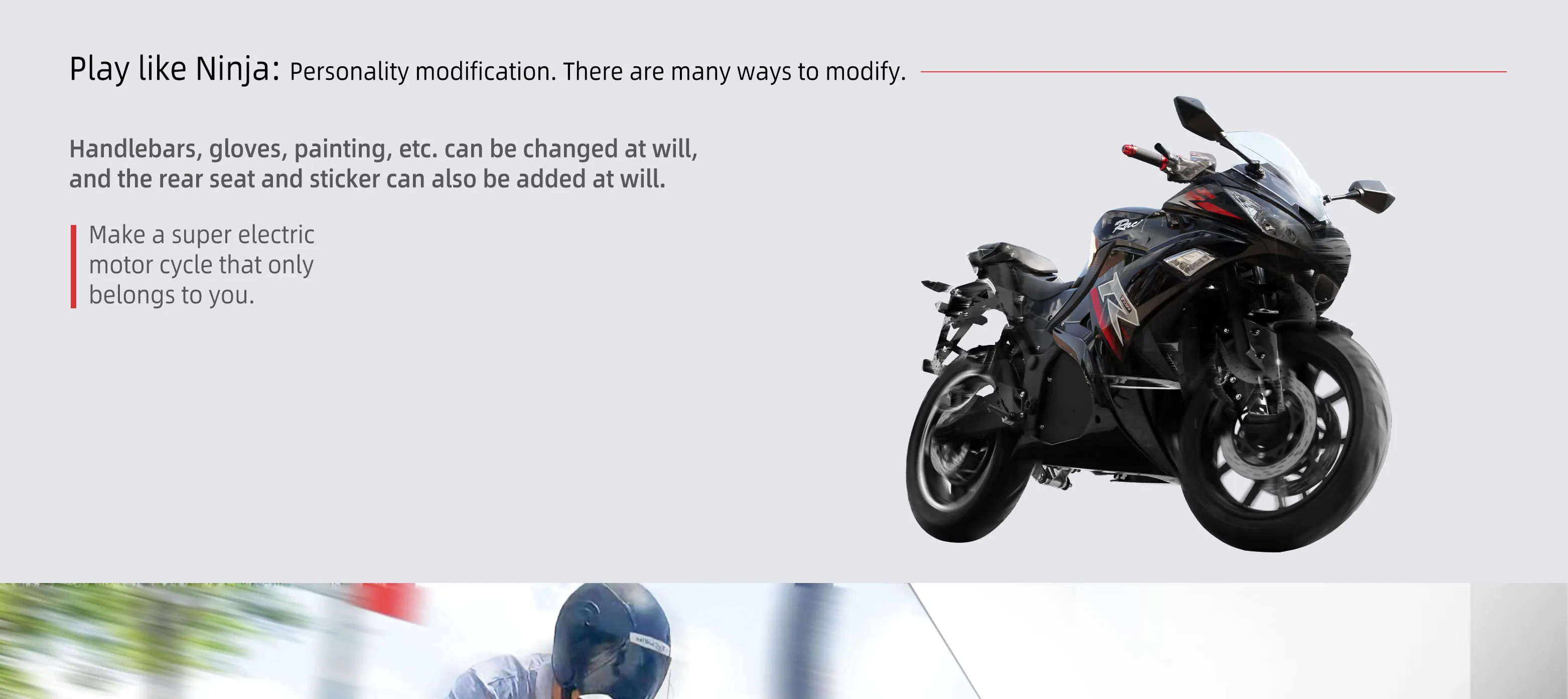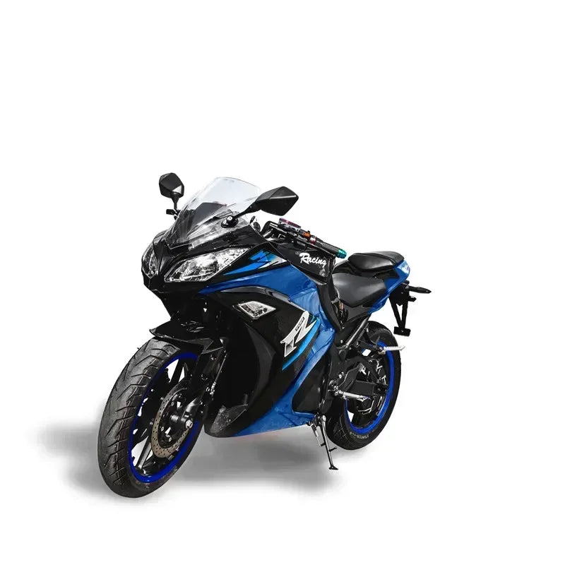 1. Similar to Ninja in electric motorcycle industry,Uninhibited appearance, out of the ordinary 2. Have Super car gene, lightweight and easy to handle 3. Ergonomics, born for sports.A narrow seat design allows the rider to confidently reach the ground and creates a lower center of gravity for confident handling. 4. The top speed is 80KM/H,Twin LED headlights produce strong white lighting 5. Personality modification. There are many ways to modify. Handlebars, gloves, painting, etc. can be changed at will, and the rear seat and sticker can also be added at will. Make a super electric motor cycle that only belongs to you.