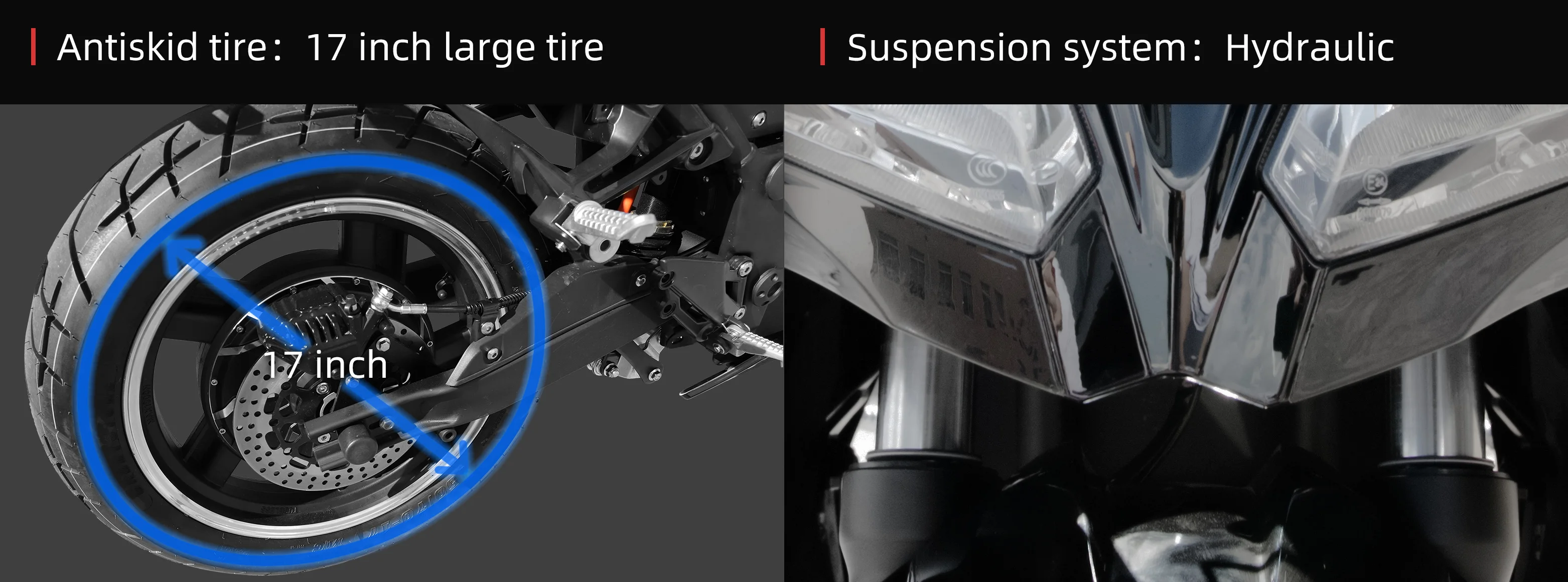 F: 110-70-17, R: 140-70-17 Tubeless tyre