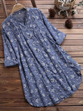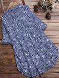 Fall Chic: Elegant Floral Midi Dress w/ Pockets, Long Sleeves, Button Detail - Casual & Durable