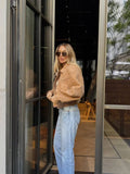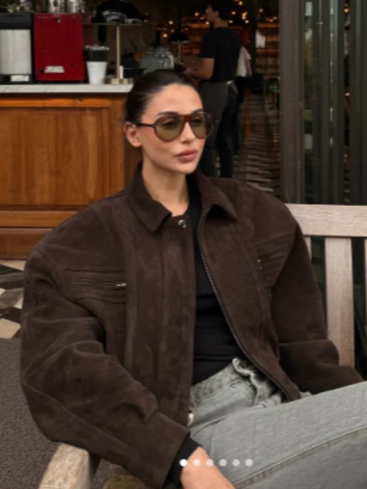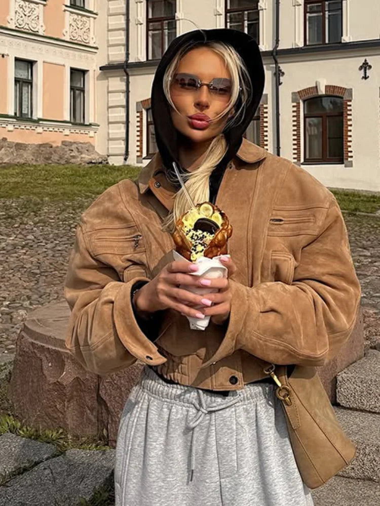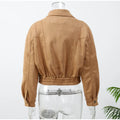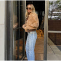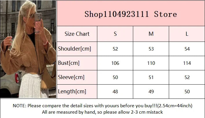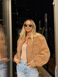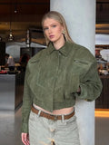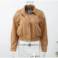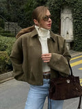 Fashion Brown Short Suede Jacket Women Chic Lapel Long Sleeve Pocket Zipper Cropped Coat Autumn Lady Highstreet Commute Outwear