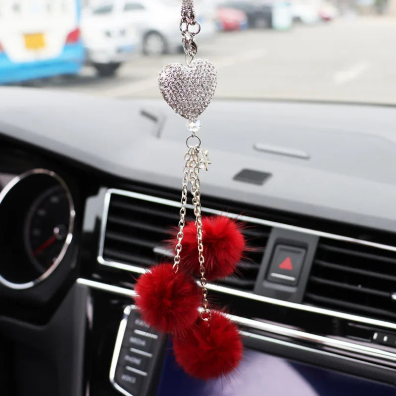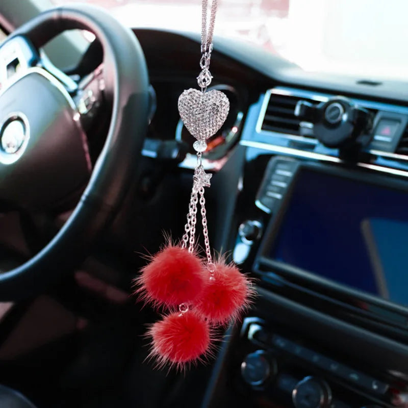 Fashion Diamond Car Accessorie Bling Hairball Pendant Auto Rearview Mirror Pendant Birthday Gift Auto Decoraction Ornaments