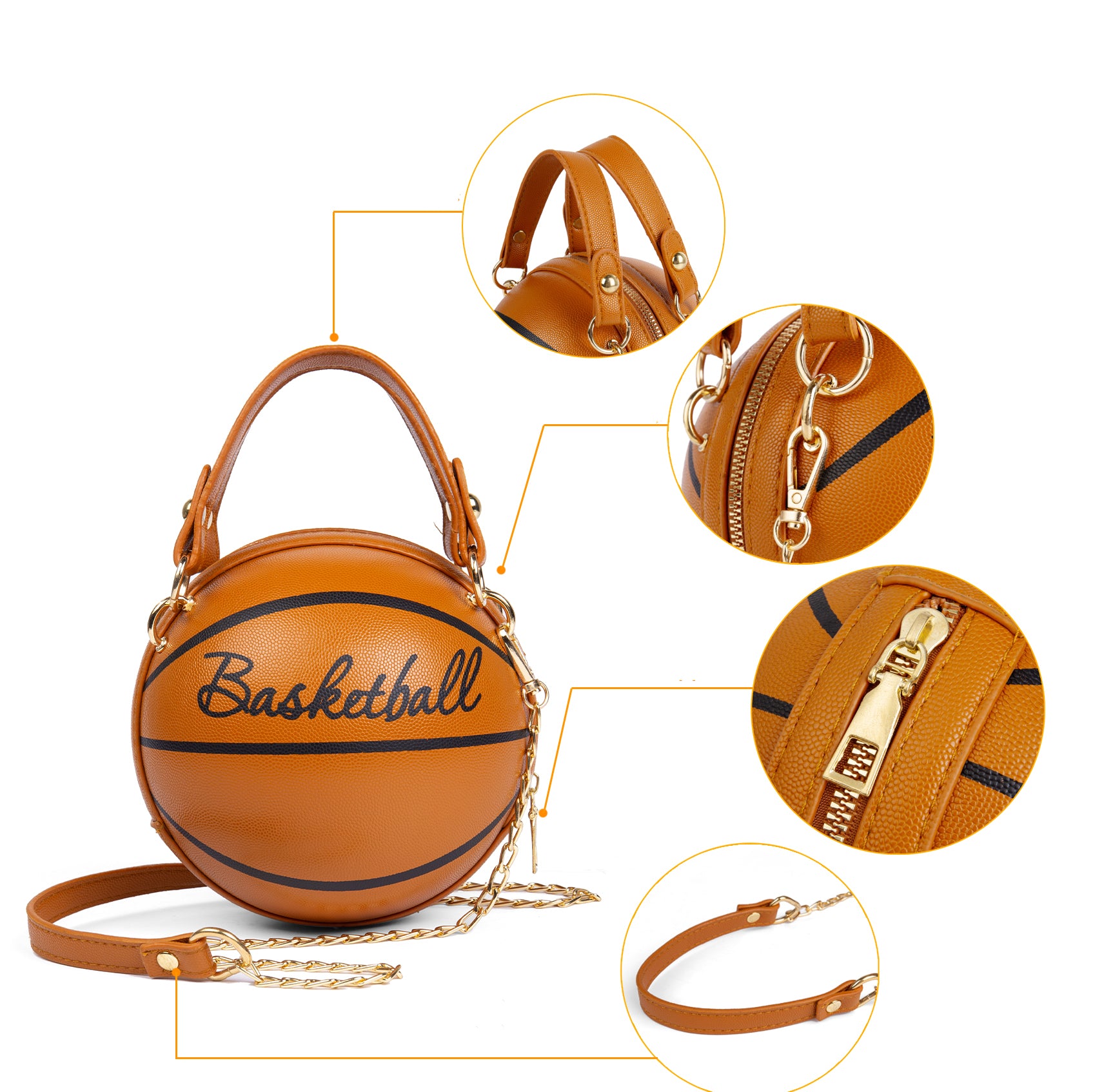 【Durable Material】:High Quality Durable PU Leather Inner Fabric Polyester Handmade Leather High-quality Ladies Shoulder Bag Cute Basketball Shape Crossbody Bag