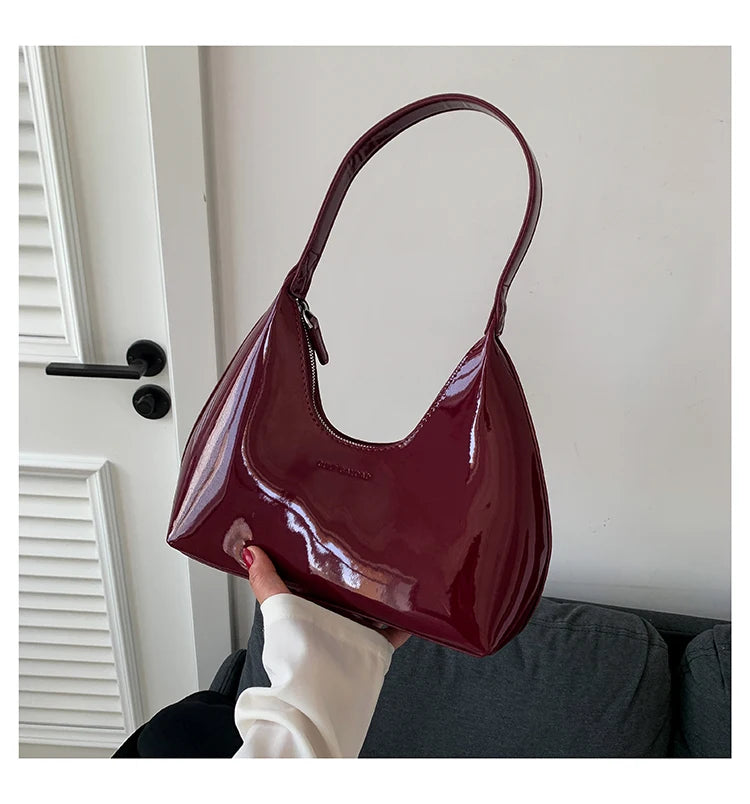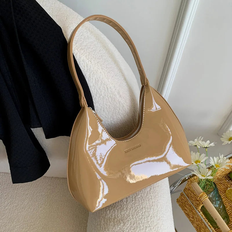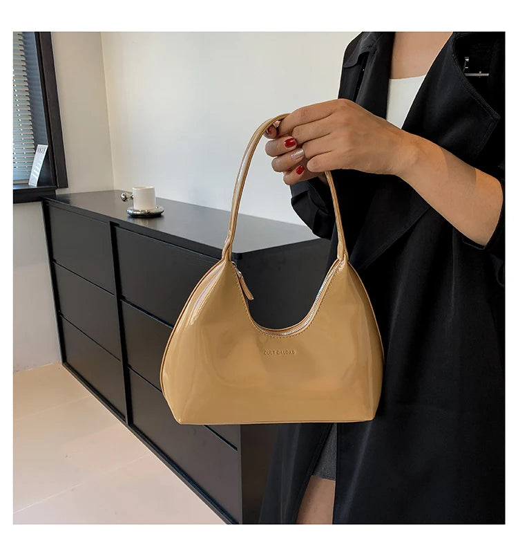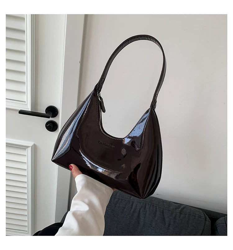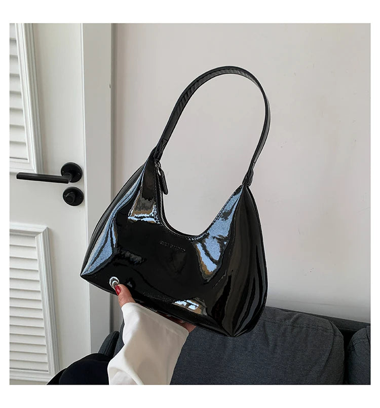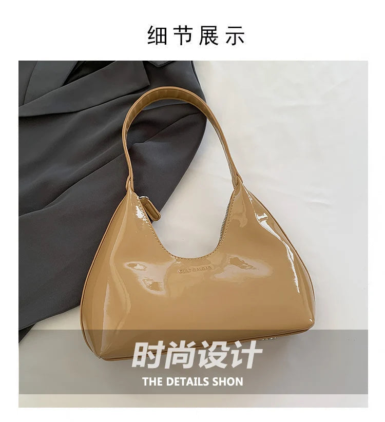 Fashion Luxury Brand Women's Shoulder Bag High Quality Patent Leather Tote Bag Waterproof Armpit Bag Solid Color Women's Handbag