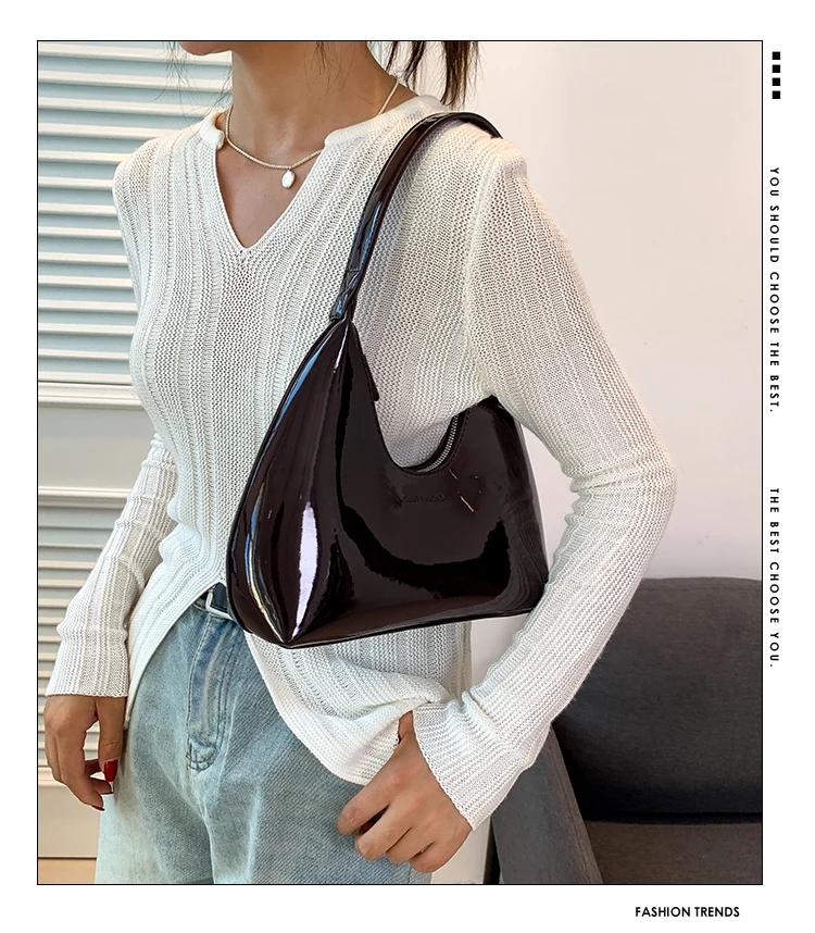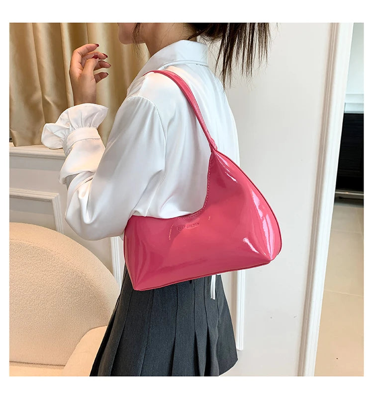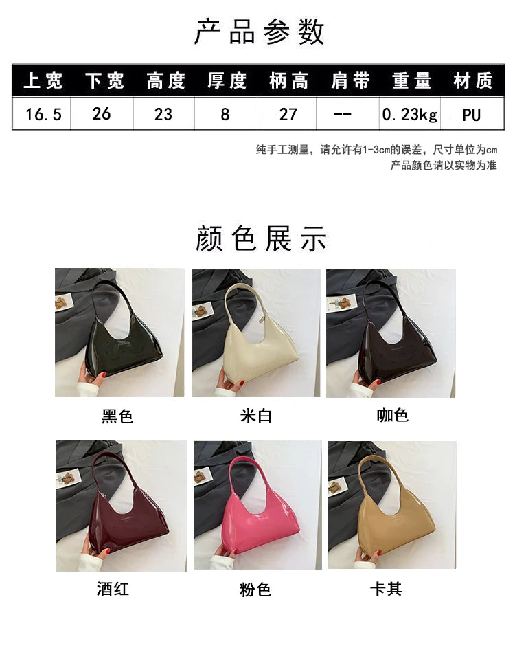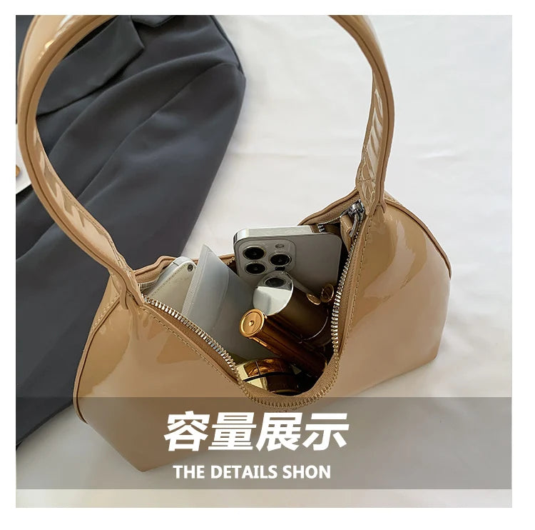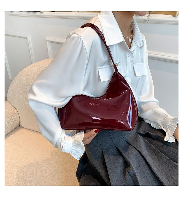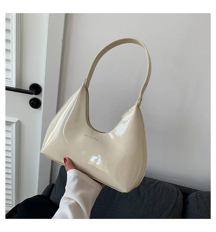 Fashion Luxury Brand Women's Shoulder Bag High Quality Patent Leather Tote Bag Waterproof Armpit Bag Solid Color Women's Handbag