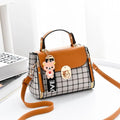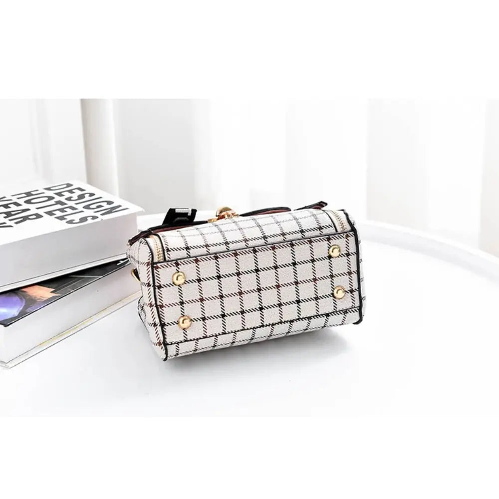 Fashion Plaid Pattern Handbag Women's Buckle Flap Shoulder Bag Purse Ladies PU Leather Crossbody Bag